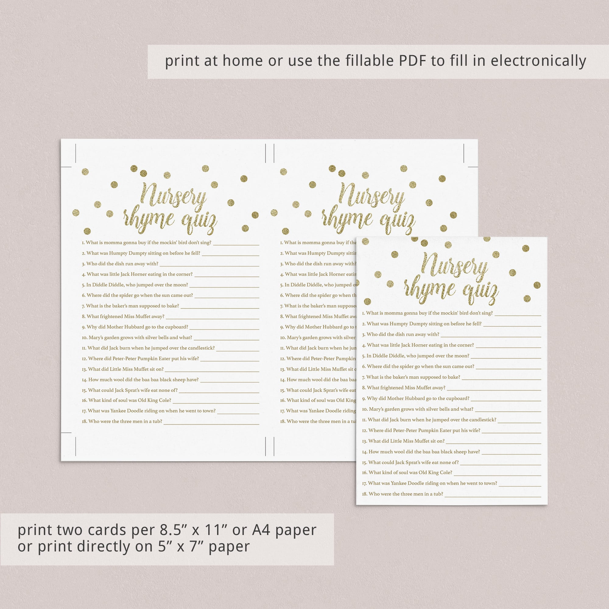 Entertain your (virtual) baby shower guests with this bundle of 4 gold baby shower games. The game bundle includes everything you need to entertain large groups of guests with a variety of activities. Printable and electronically fillable files are included.