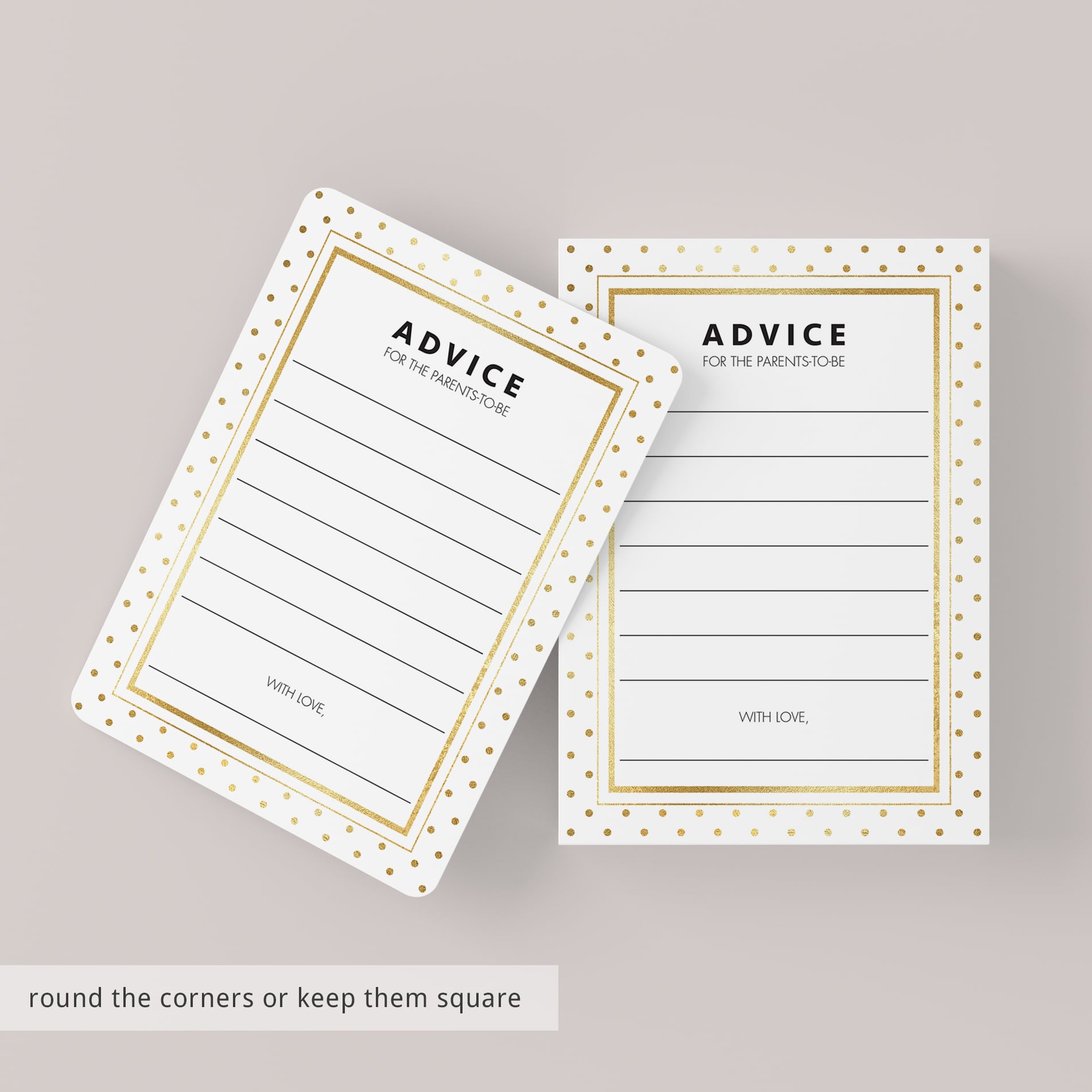 Let your guests write down their words of wisdom for the parents to be on your beautiful baby advice cards!