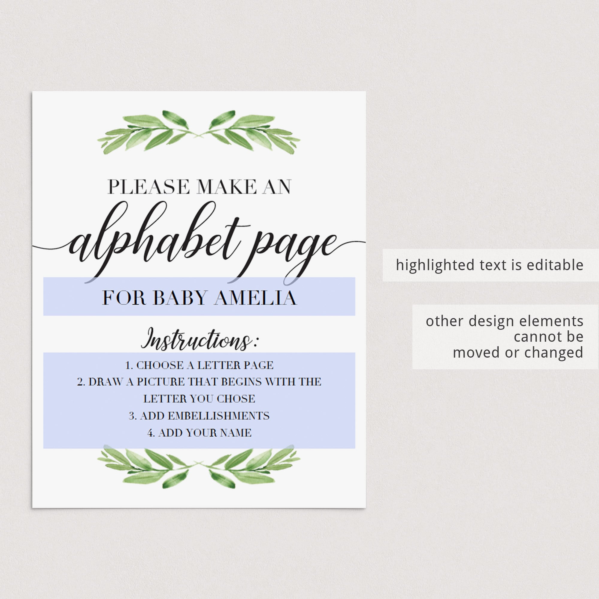 Are you looking for some fun and creative DIY baby shower activities? Get crafty with this pack of greenery baby shower activities! The instruction signs with watercolor green foliage will add a really great touch to any neutral baby shower.