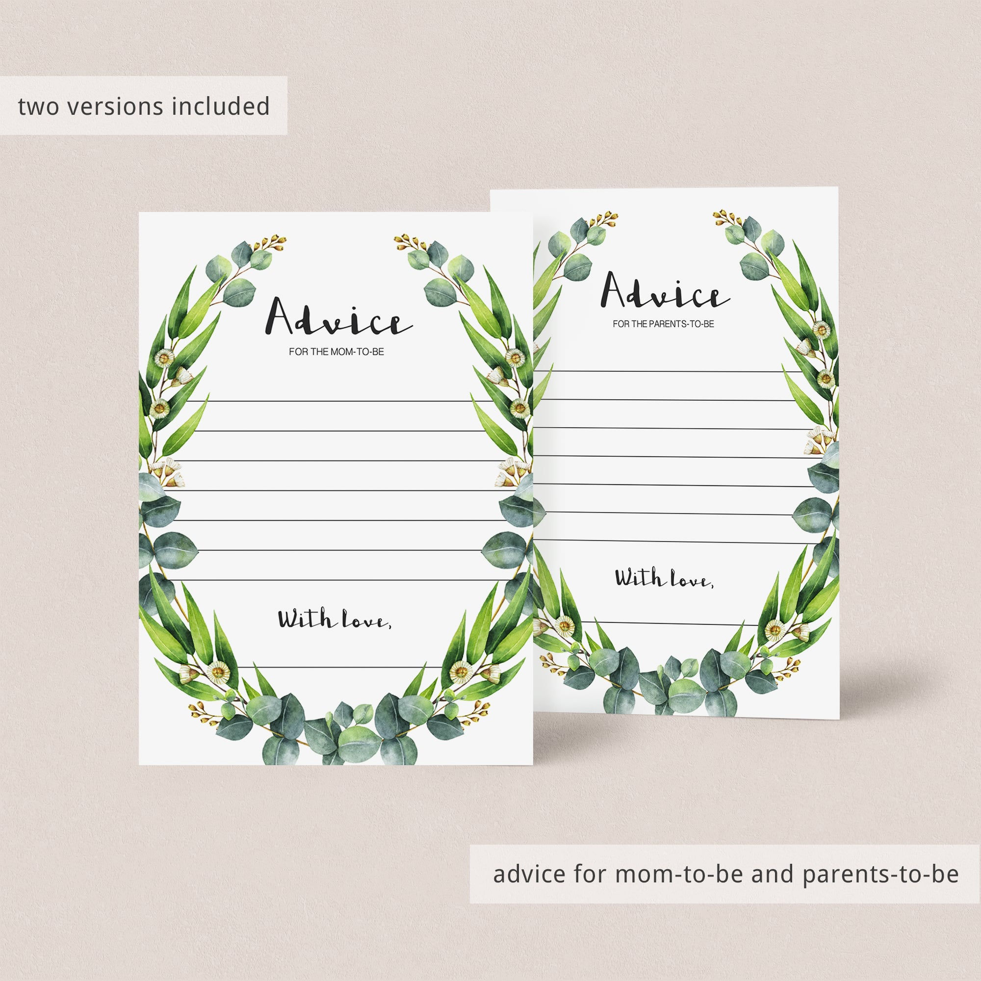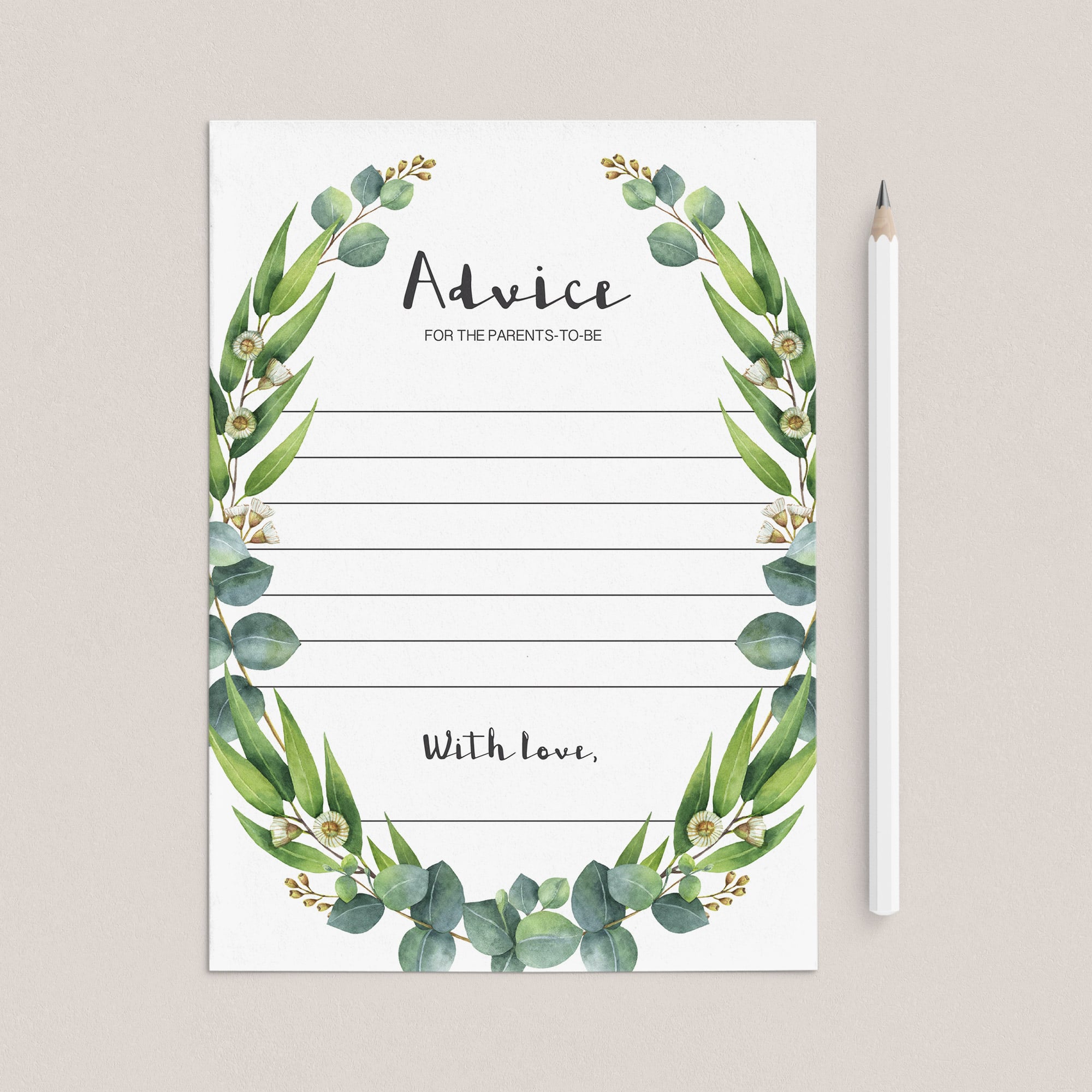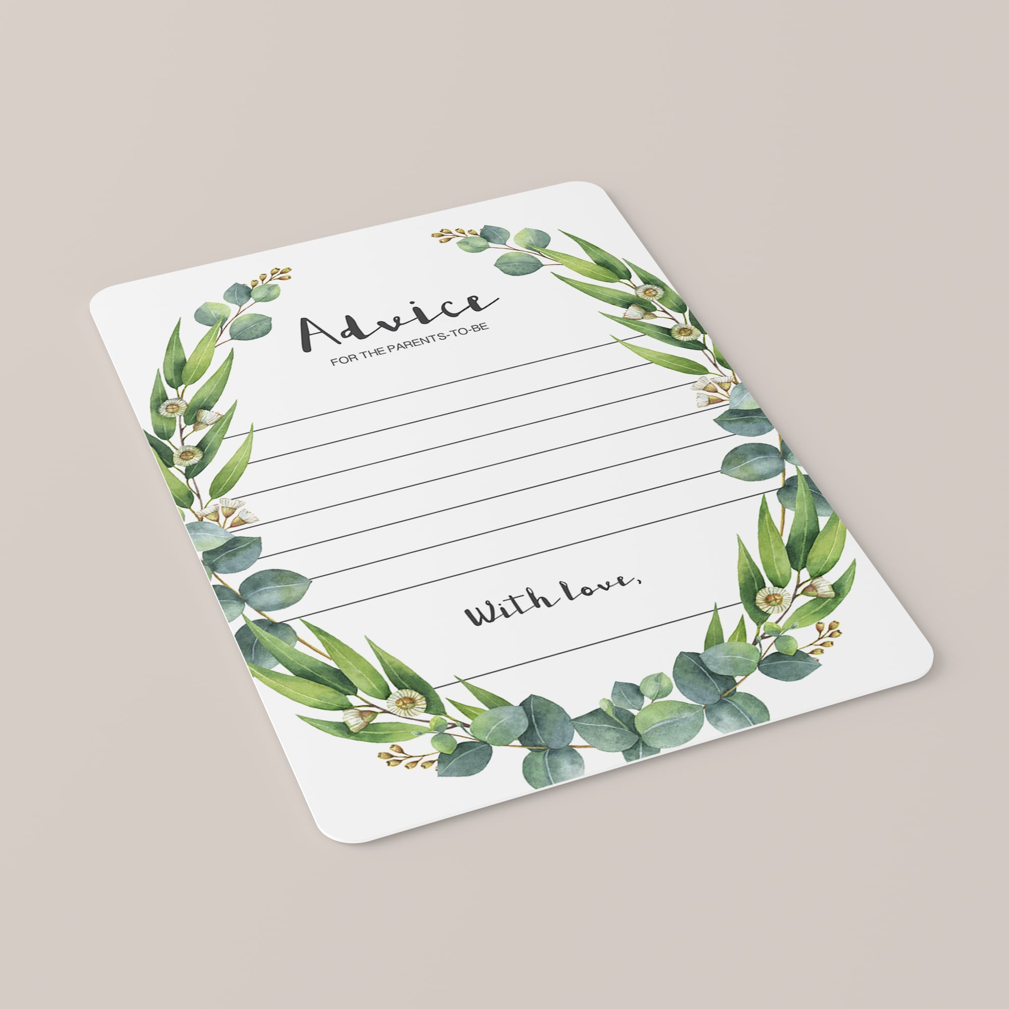 Let your guests write down their words of wisdom for the parents-to-be on these greenery advice cards!