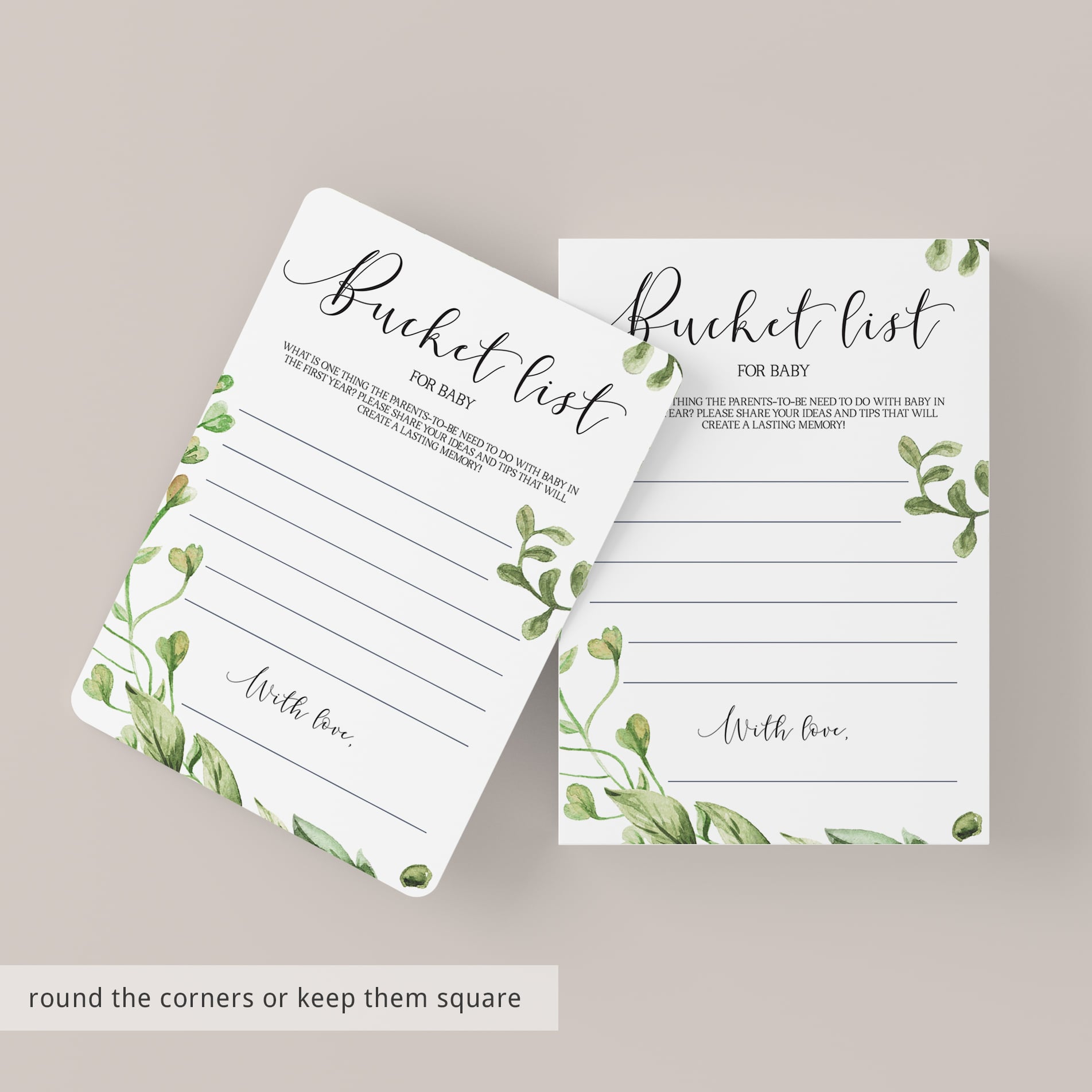 The greenery baby shower keepsake cards are a great way to involve your friends and family throughout the first year of the new baby’s life. It produces a bucket full of heartwarming advice and wisdom for the new parents.