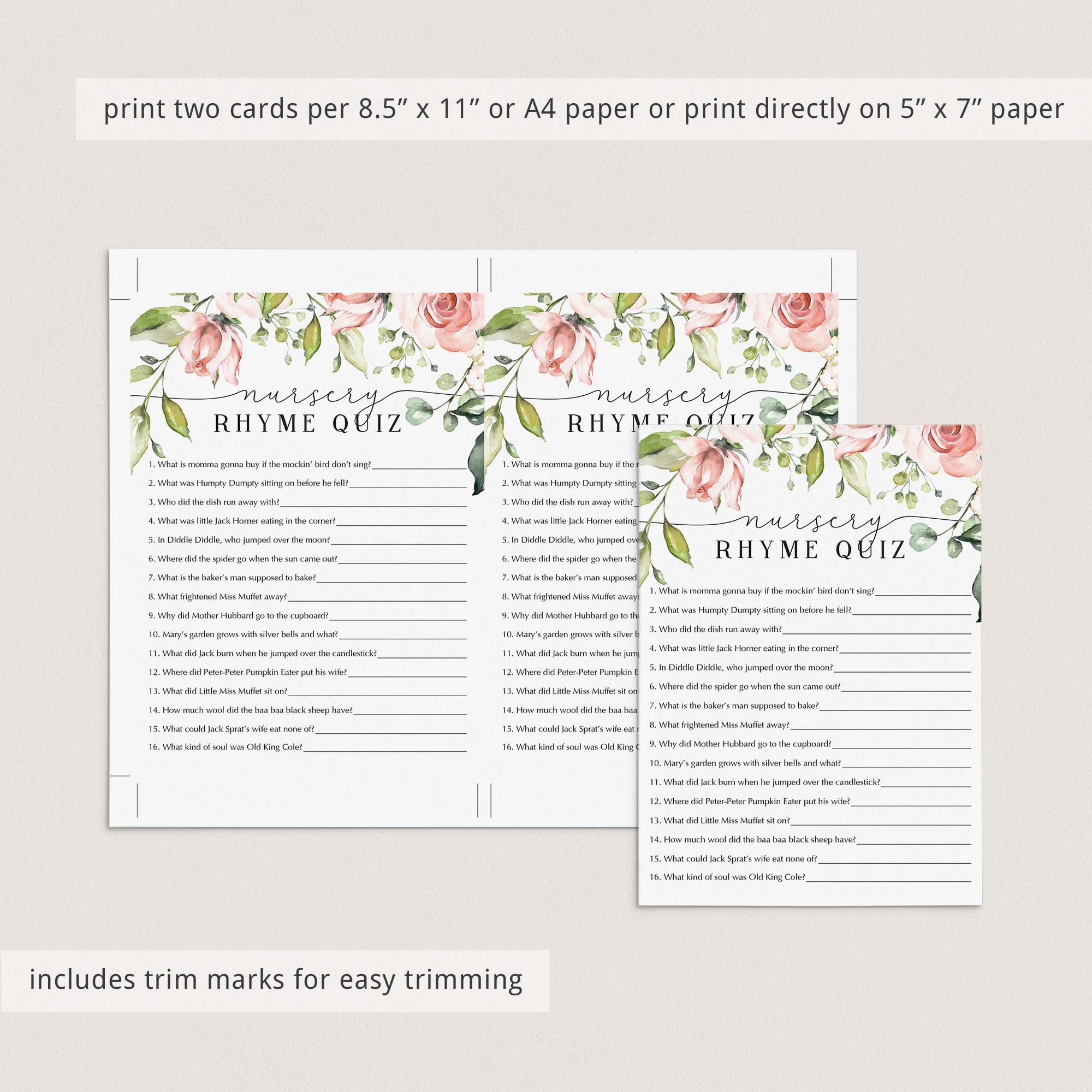 Entertain large groups of guests with this amazing blush floral baby shower game package with watercolor roses. The instant downloadable game package includes everything you need to entertain your guests with a variety of activities and to create meaningful keepsakes for the new mom.