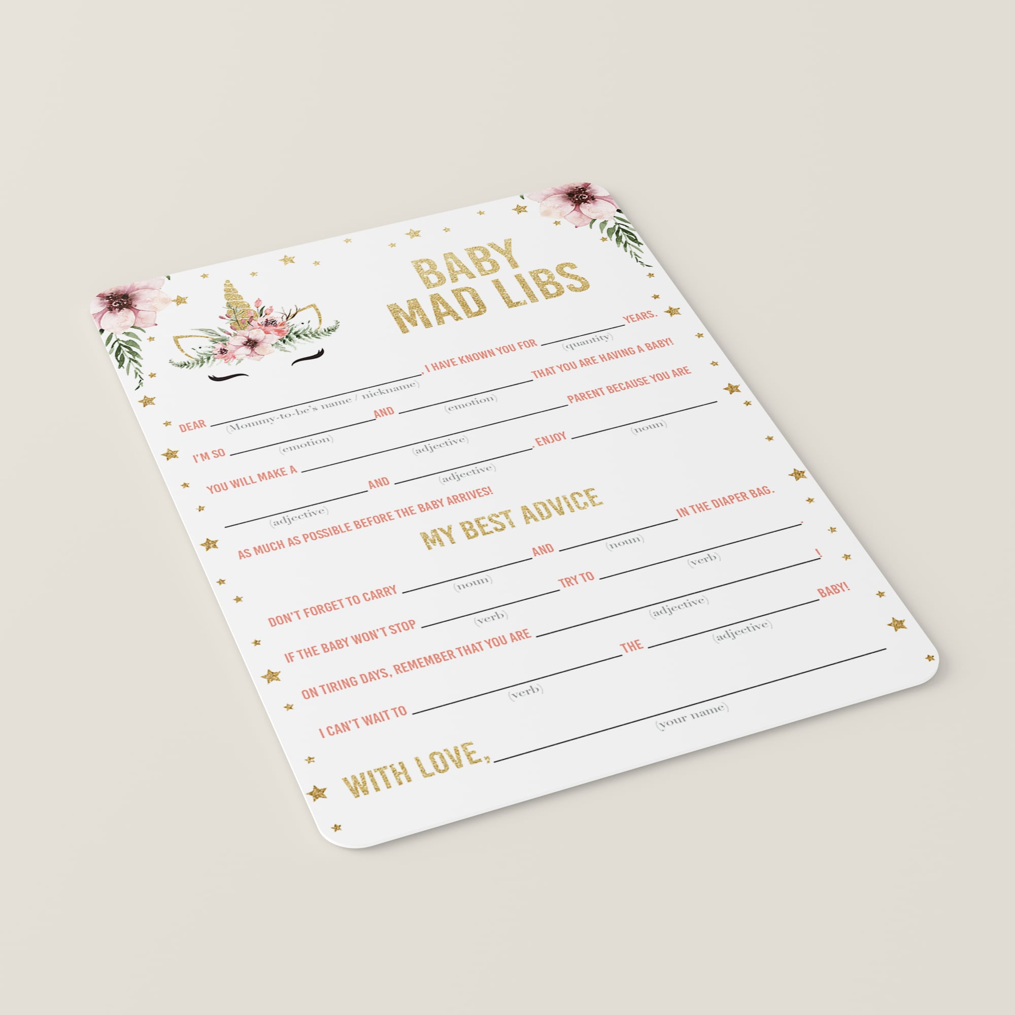 Printable mad libs for baby shower game gold unicorn by LittleSizzle