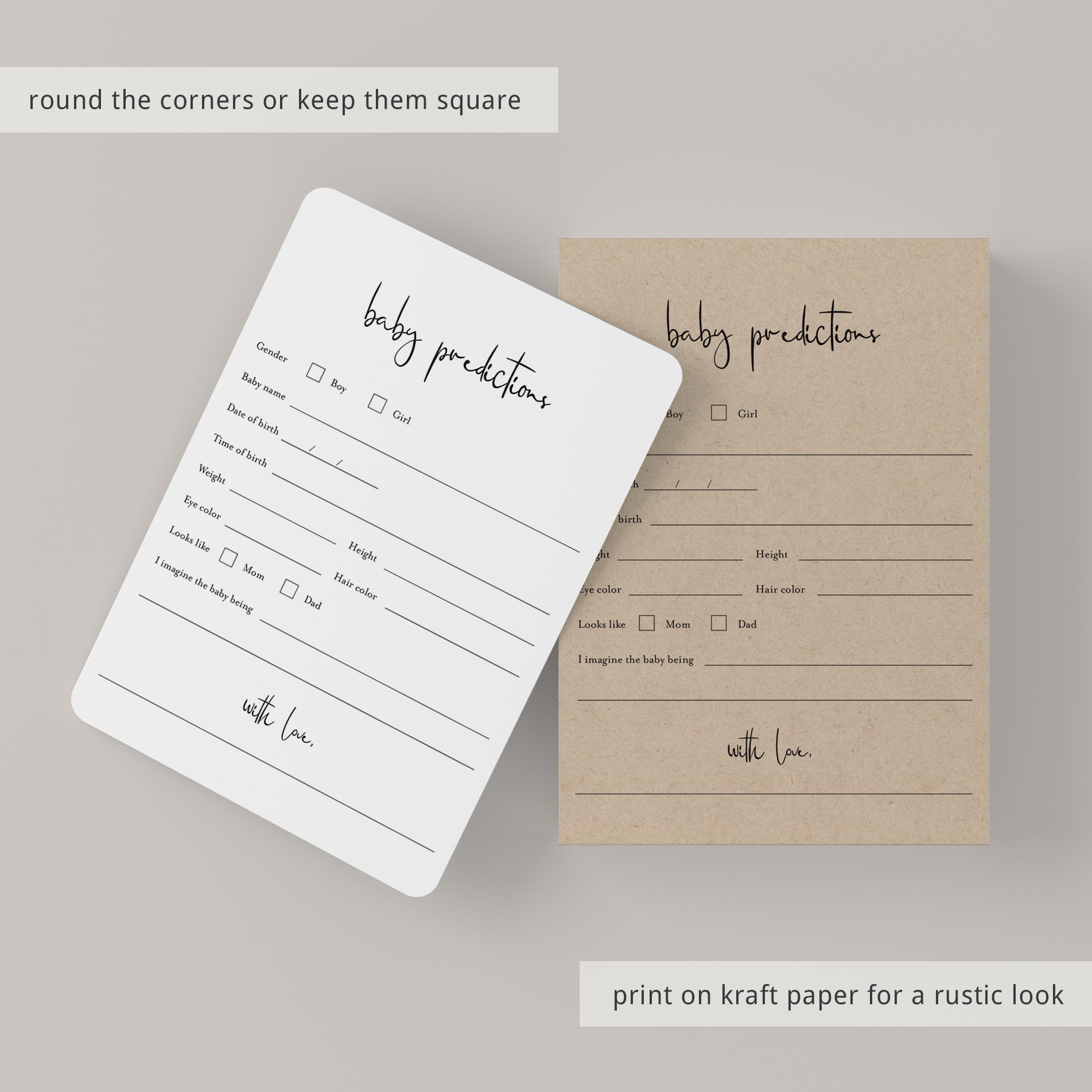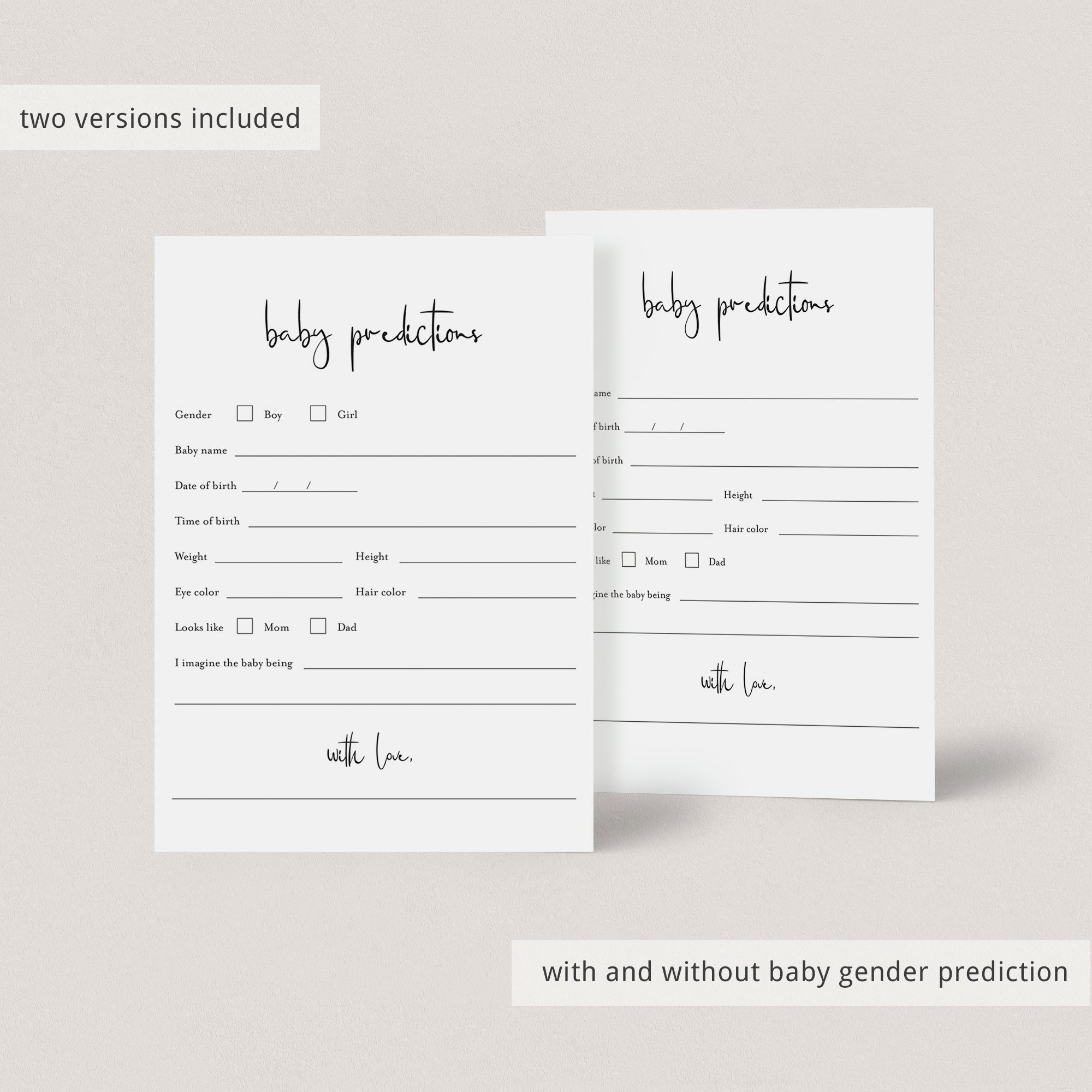 • Baby Predictions card (two versions included, with and without baby gender prediction).