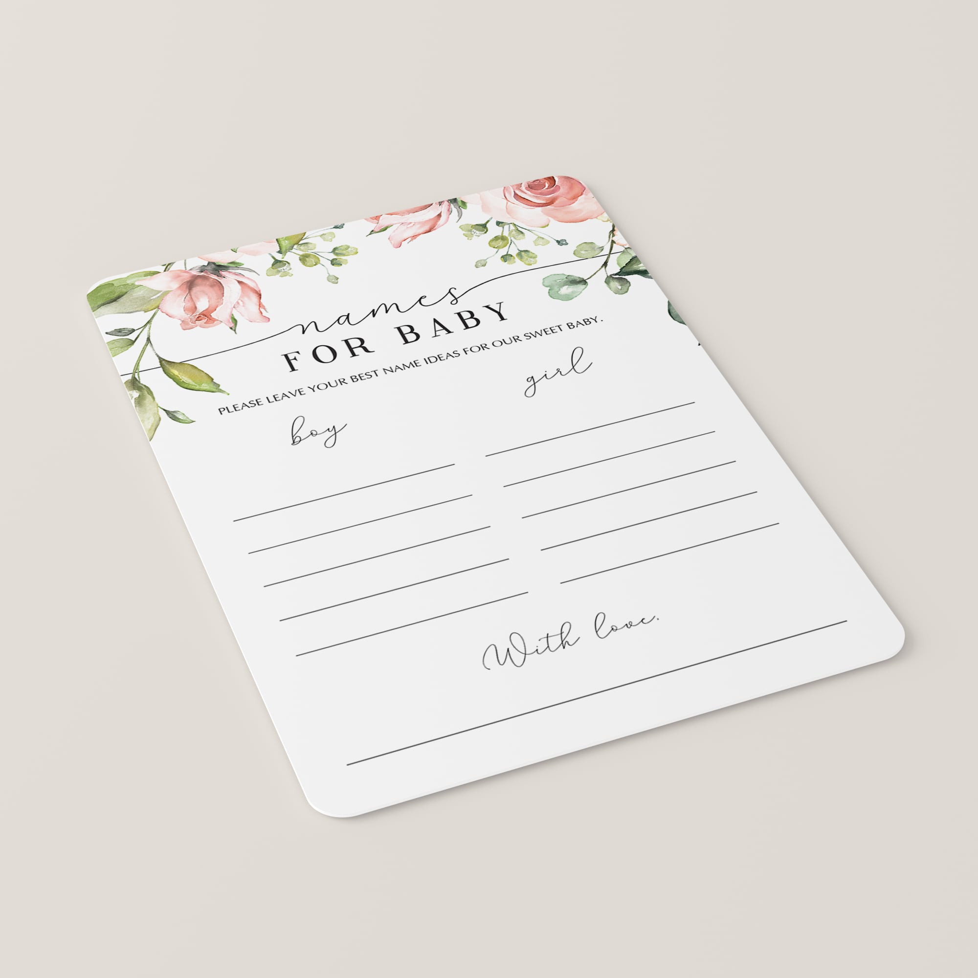 Are you looking for a baby shower game that is not only fun, but also provides the parents-to-be with a great source of inspiration for baby names? Play Names for Baby with these gorgeous cards with watercolor blush flowers.