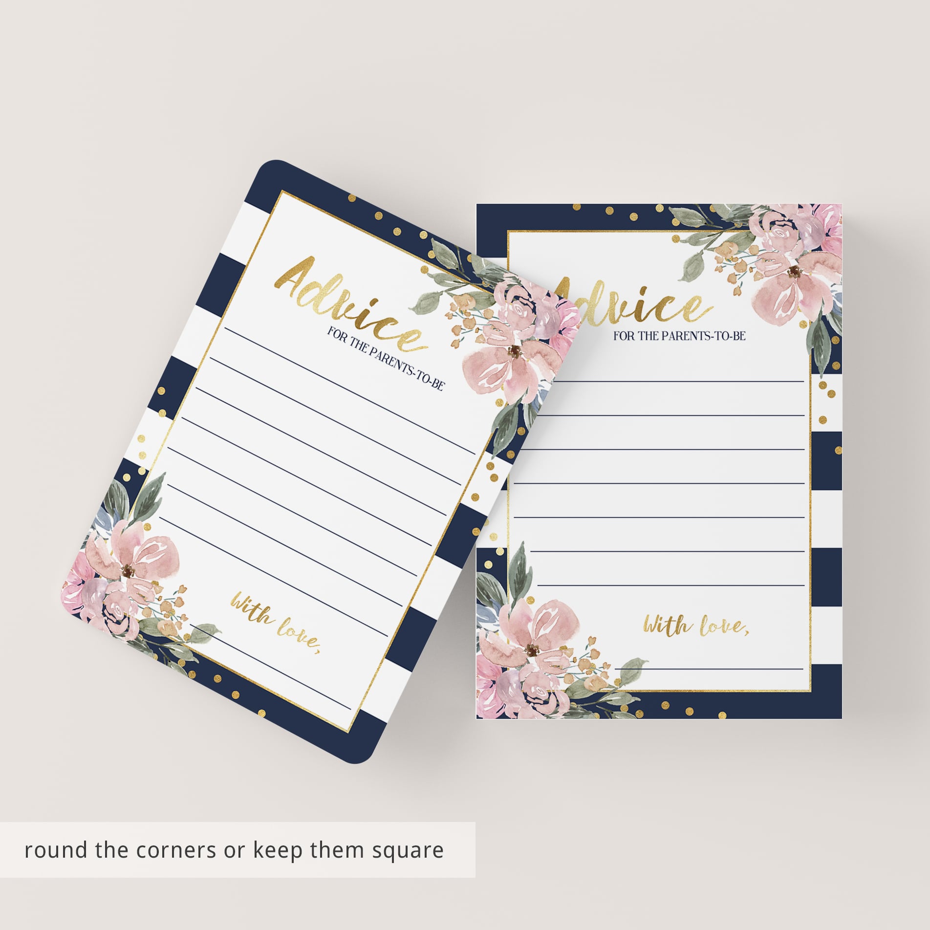 Let your guests write down their words of wisdom for the parents-to-be on your beautiful navy and gold baby shower advice cards!