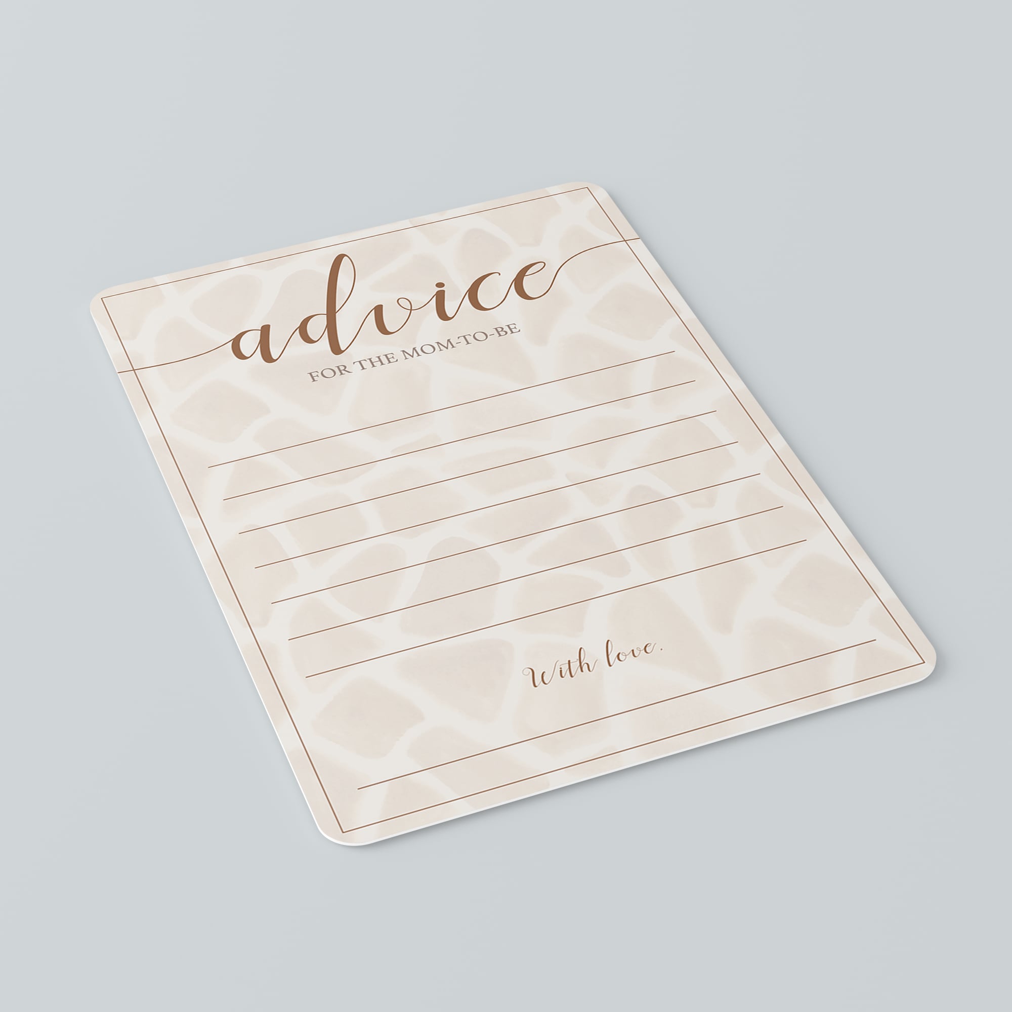 • Advice card (two versions included, advice for the mom-to-be and advice for the parents-to-be)