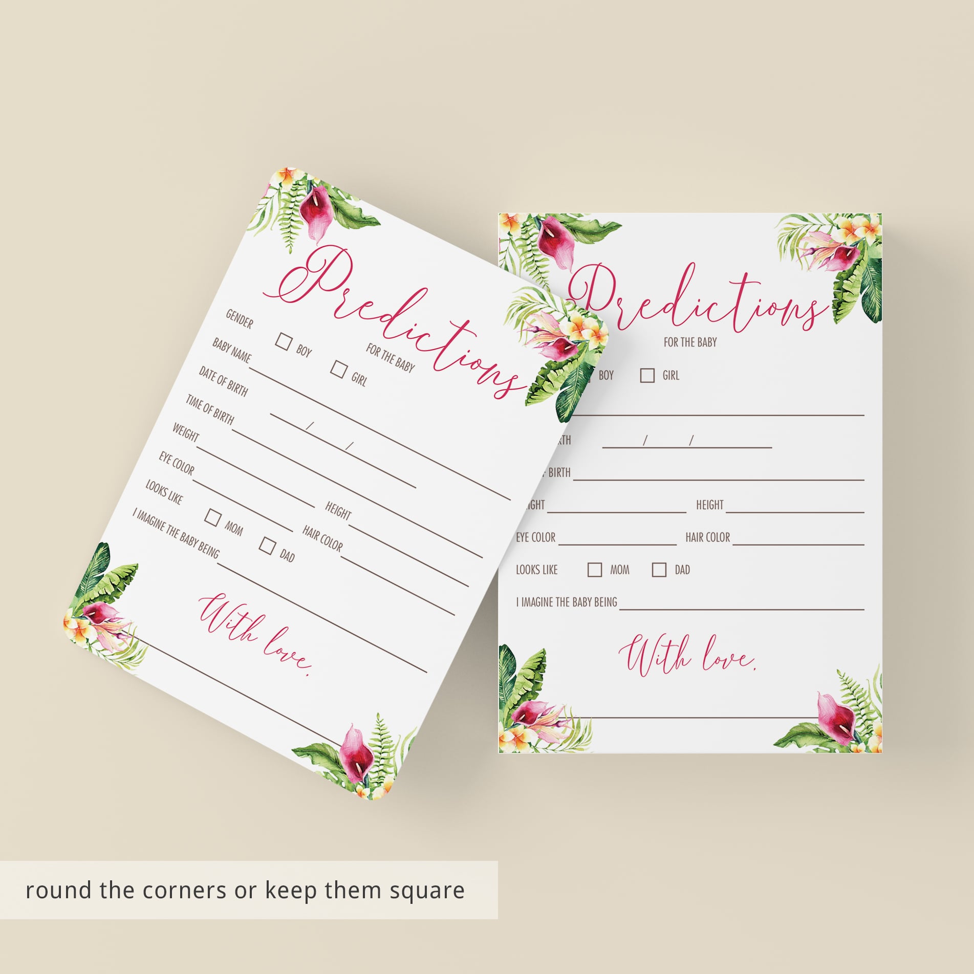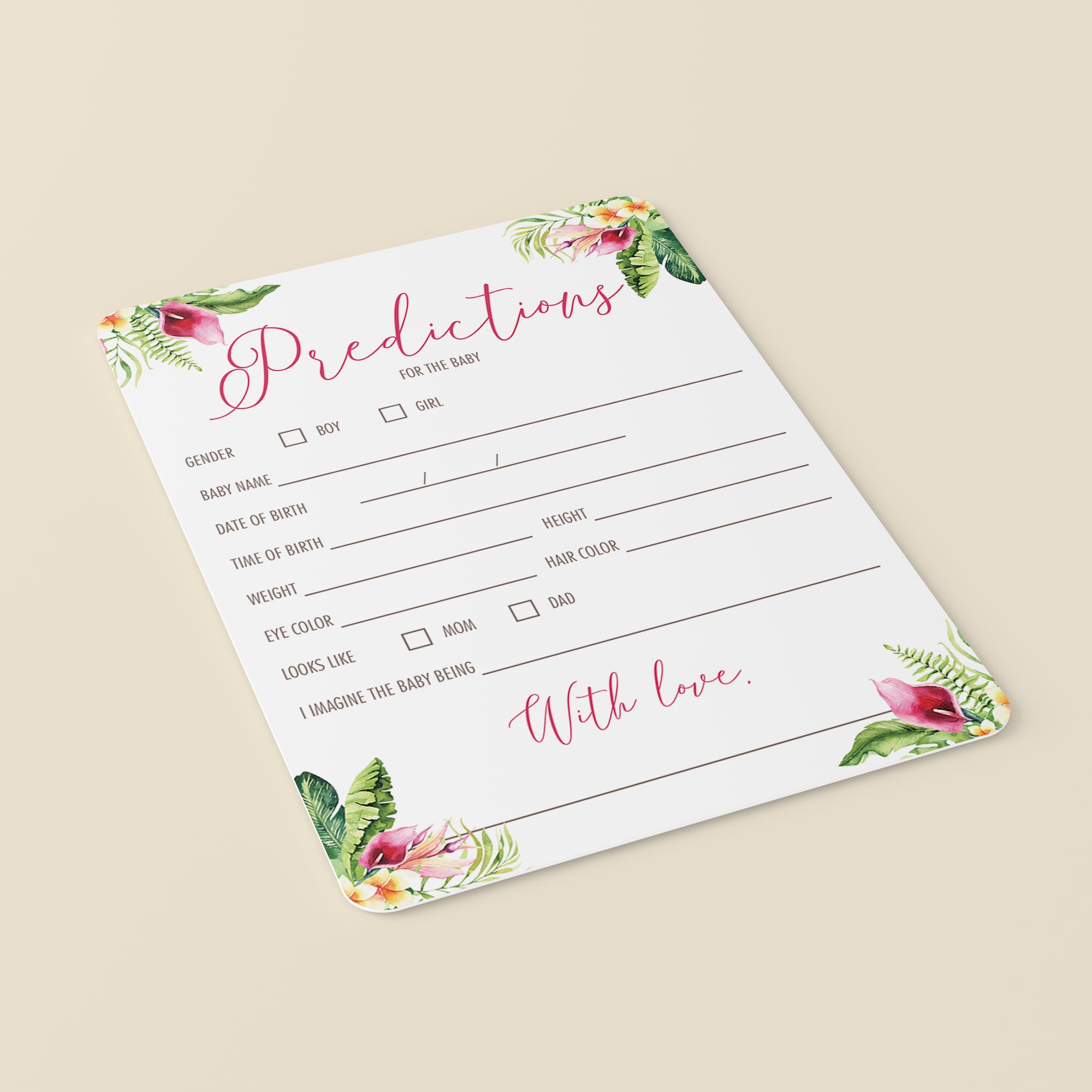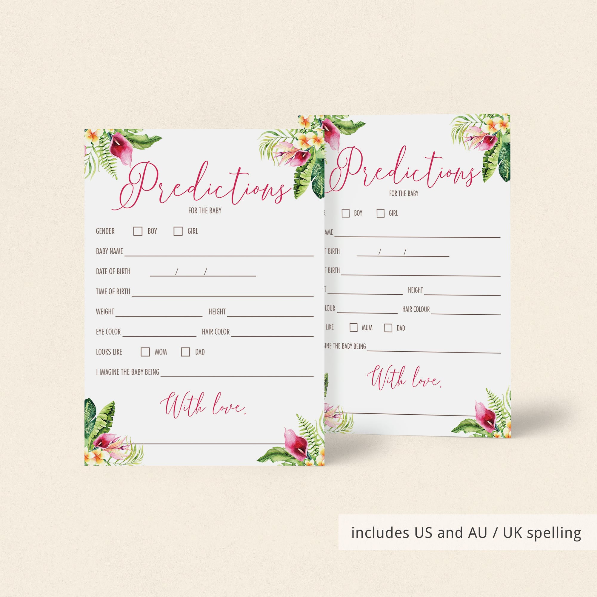 Let your guests make their best predictions at all the new baby's birth stats and WOW everyone with your unique tropical floral baby shower cards!