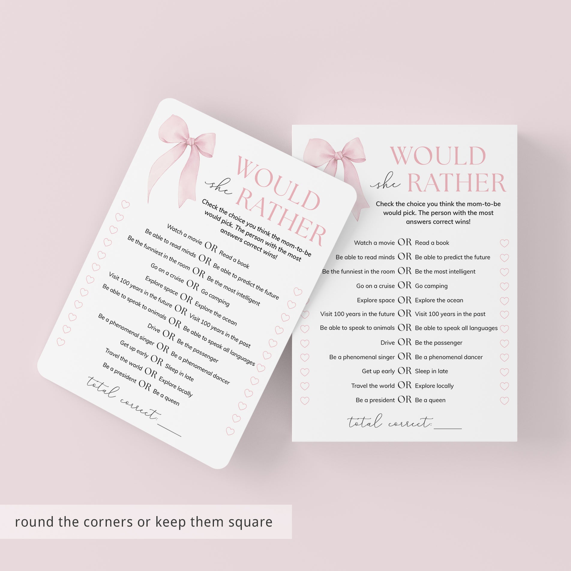 Celebrate the mom-to-be with this adorable Pink Bow Baby Shower Games Bundle, featuring a charming coquette-inspired watercolor pink bow design. Perfect for adding a girly and elegant touch to your baby shower, this bundle includes a variety of fun and engaging games that will entertain guests and create unforgettable memories. Whether you're hosting a cozy gathering or a grand celebration, these beautifully designed printables will bring a touch of sweetness and sophistication to your special day.