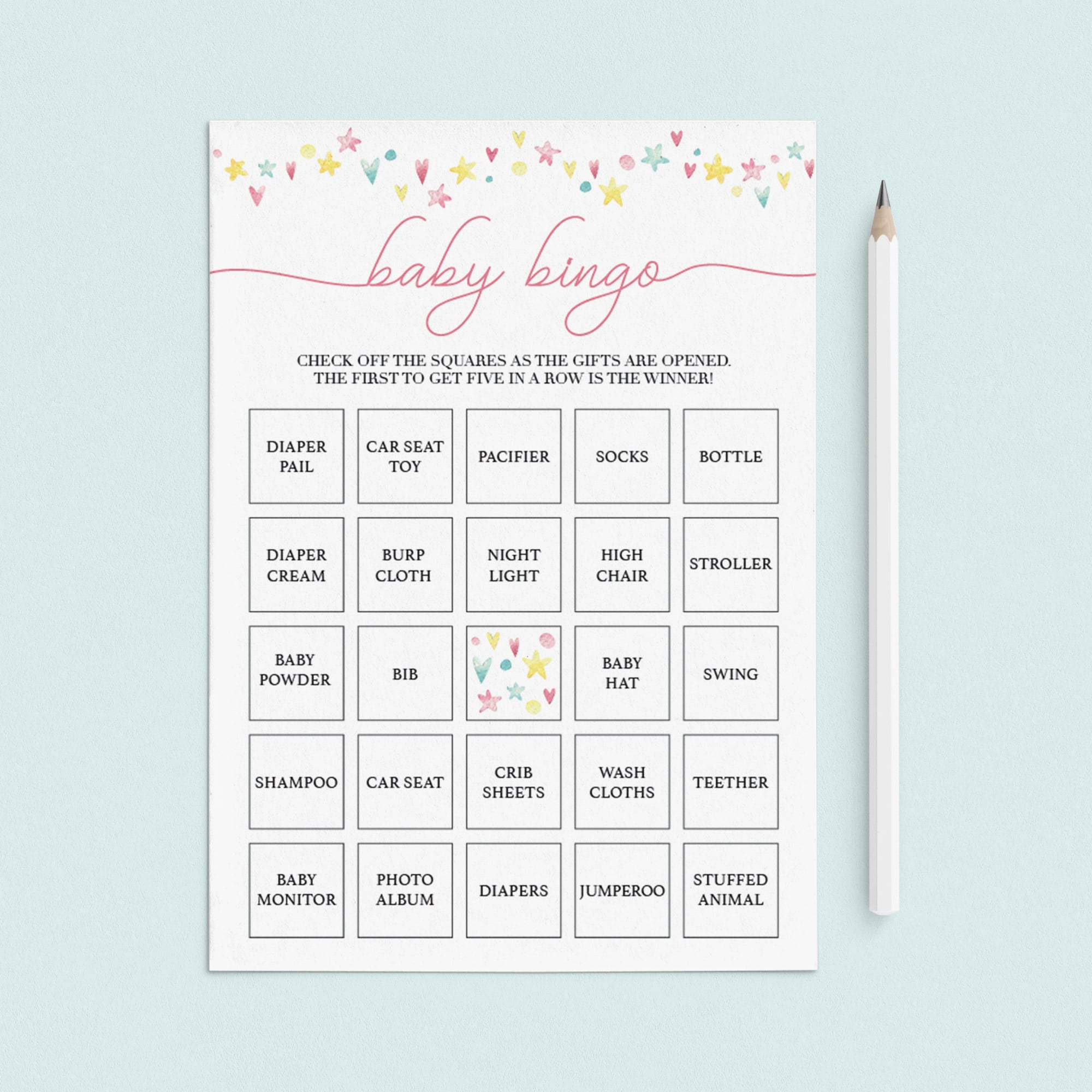 Are you hosting a baby shower to welcome a little girl? Let not only the mom-to-be enjoy unpacking gifts! Play Bingo with these cute pink and yellow baby bingo cards. Check off the squares as the gifts are opened. The first to get five in a row is the winner!