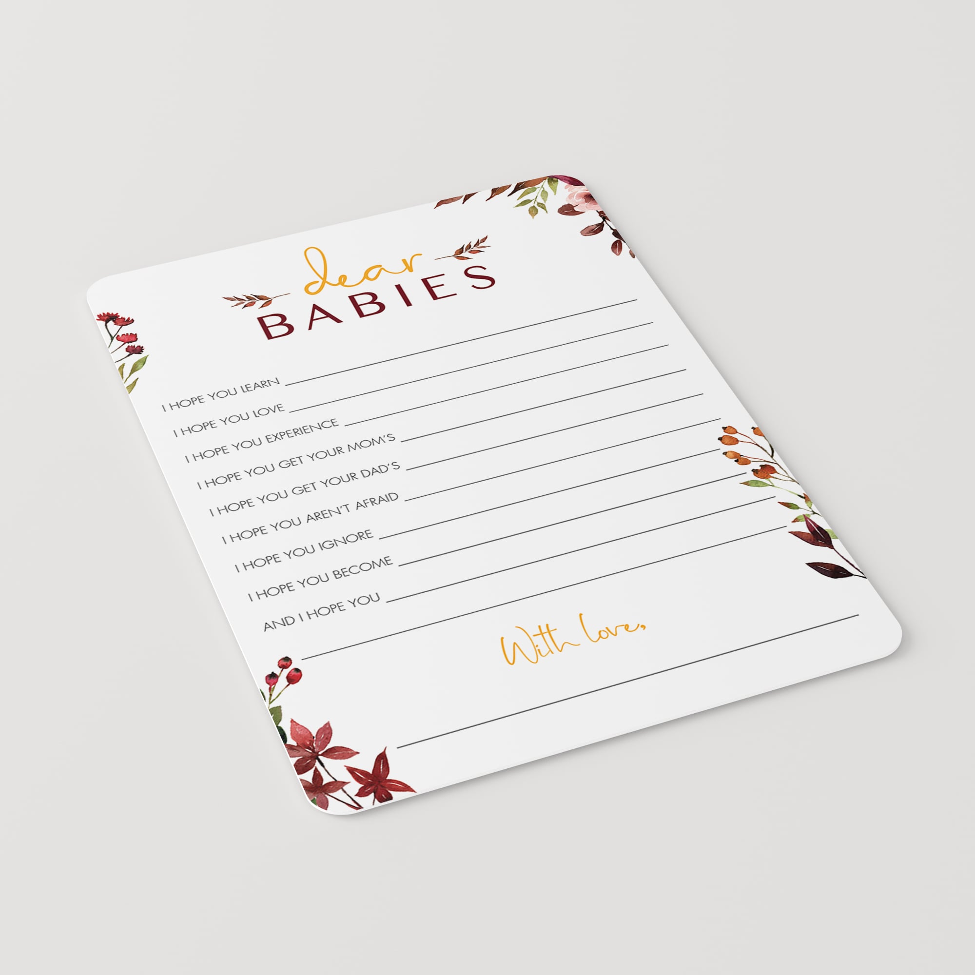 This printable Dear Babies wishes card is an instant download, so simply download and print the cards as many times as you need. We recommend printing on a nice heavy card stock for highest quality feel.