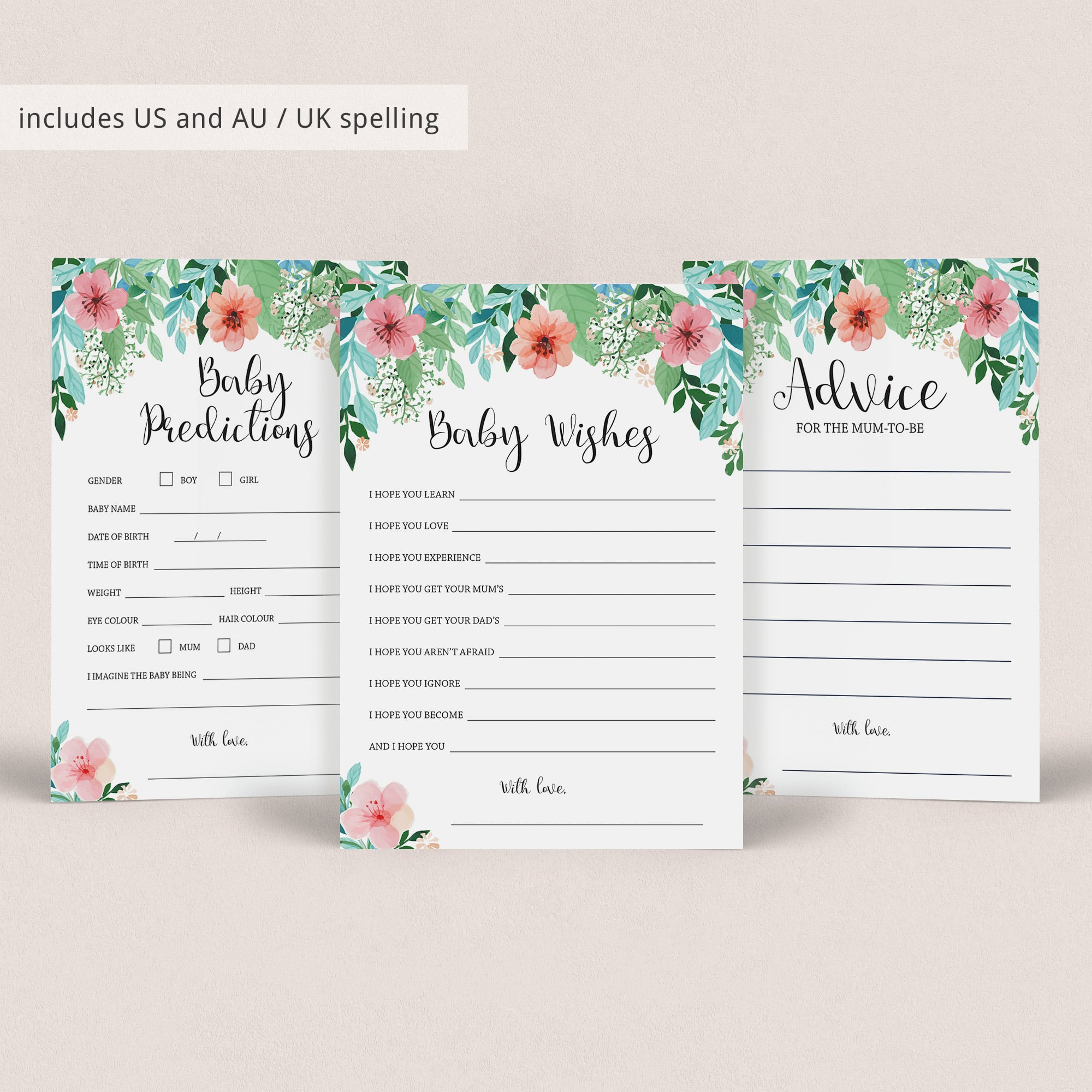 Entertain your guests with these beautiful games for a floral baby shower. The game package includes everything you need to entertain your guests with a variety of activities and create meaningful keepsakes for the mom-to-be.