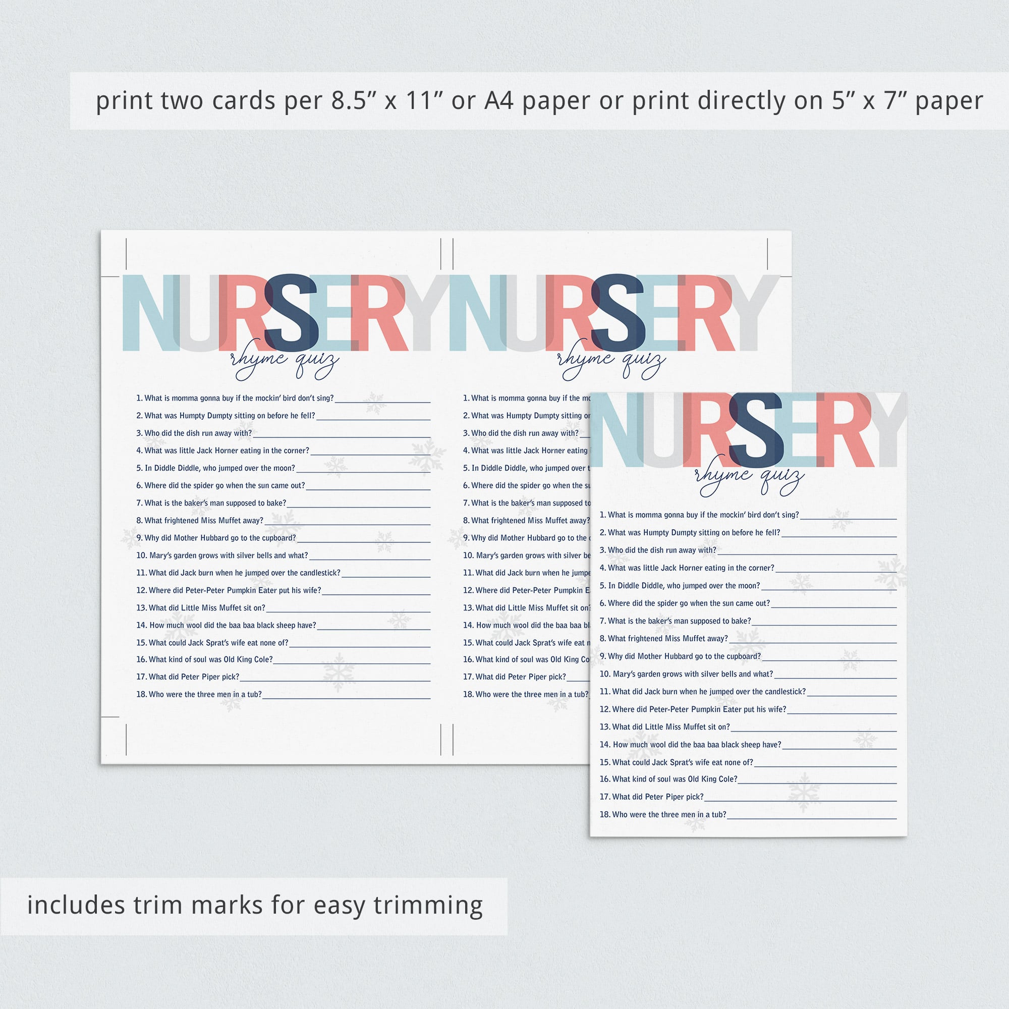 Entertain your baby shower guests with this bundle of 8 winter baby shower games. The modern blue and red games bundle with subtle snowflakes includes everything you need to entertain your guests with a variety of activities and create beautiful keepsakes for the mom-to-be. The games are perfect for a winter baby shower to welcome a baby boy.