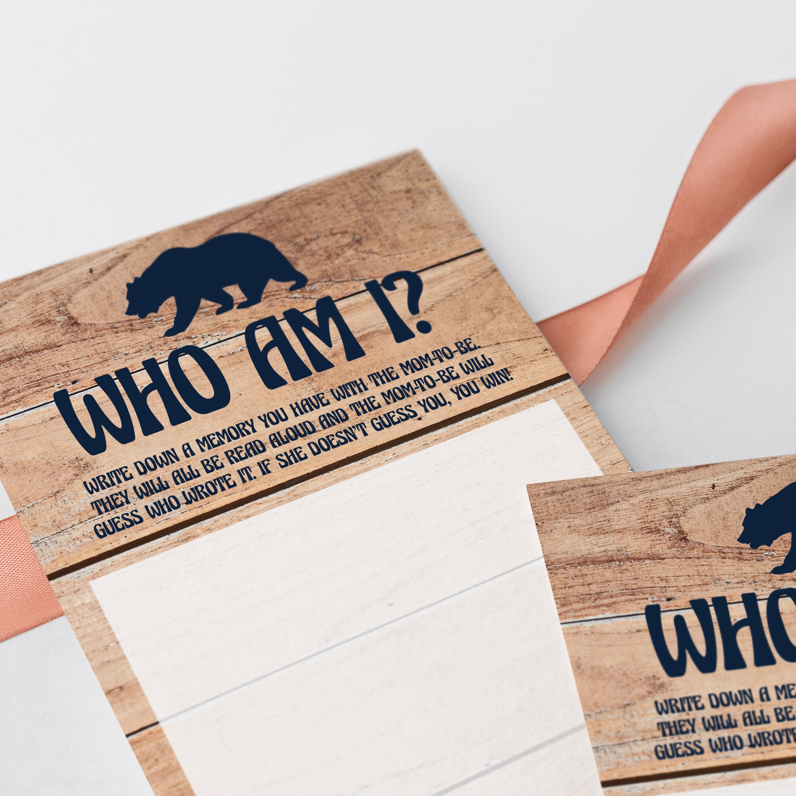 Are you looking for a fun icebreaker game to play at your rustic baby shower? Play Who Am I with these woodland themed game cards. It's the perfect addition to any rustic shower and it's sure to be a hit at your party!