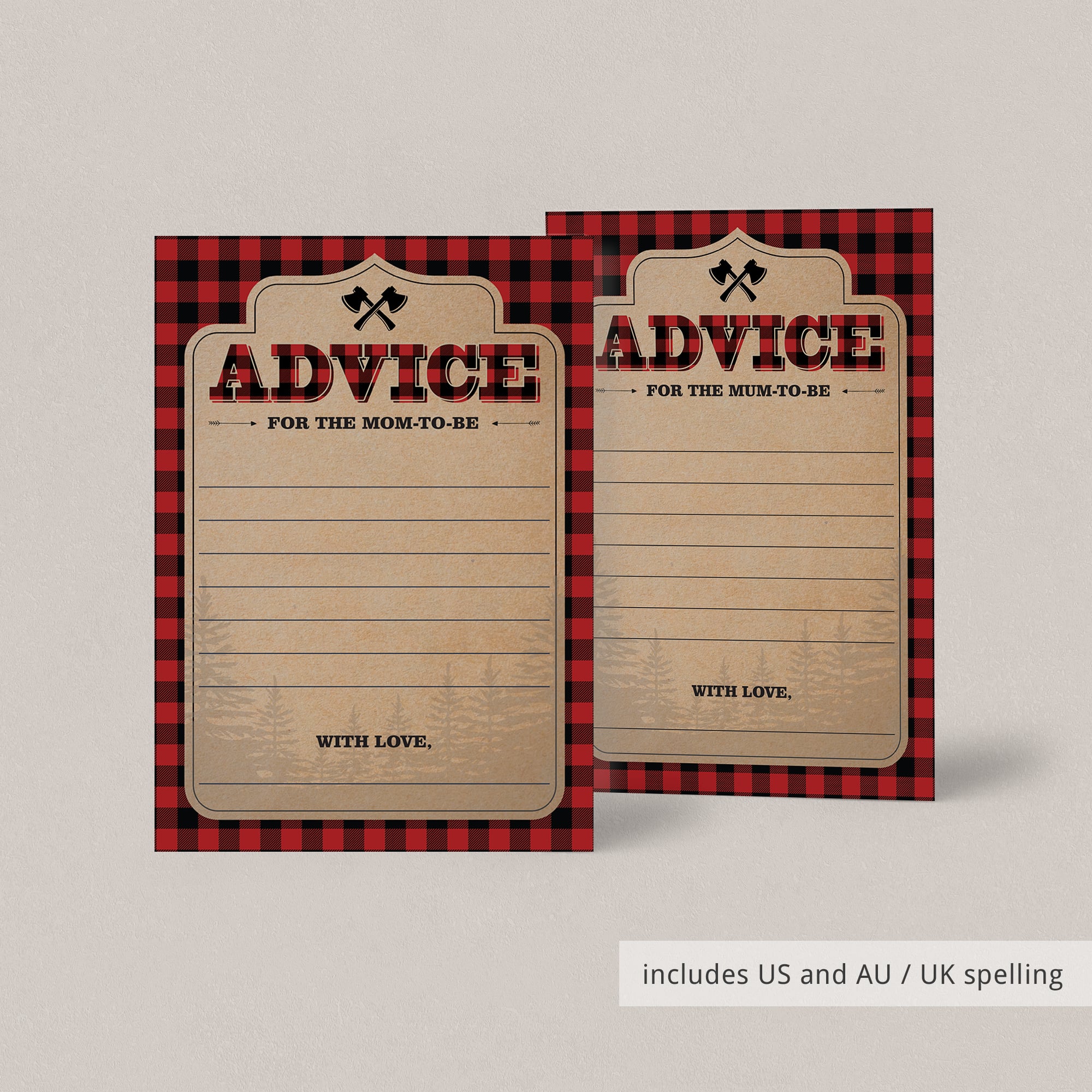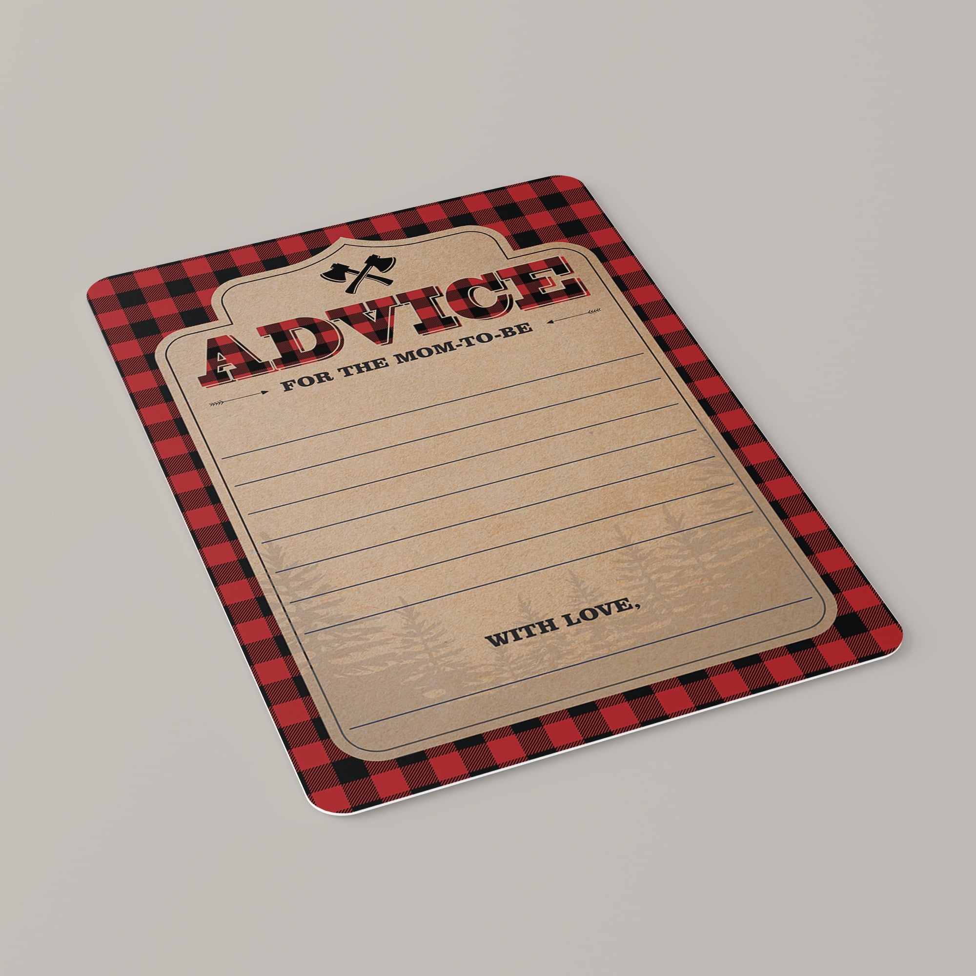 Celebrate the mommy-to-be's new adventure and create a magnificent keepsake with these unique lumberjack baby shower advice cards. Let every guest write down their words of advice for the mom-to-be and collect the cards for her. The cards will keep her going strong in tougher times.