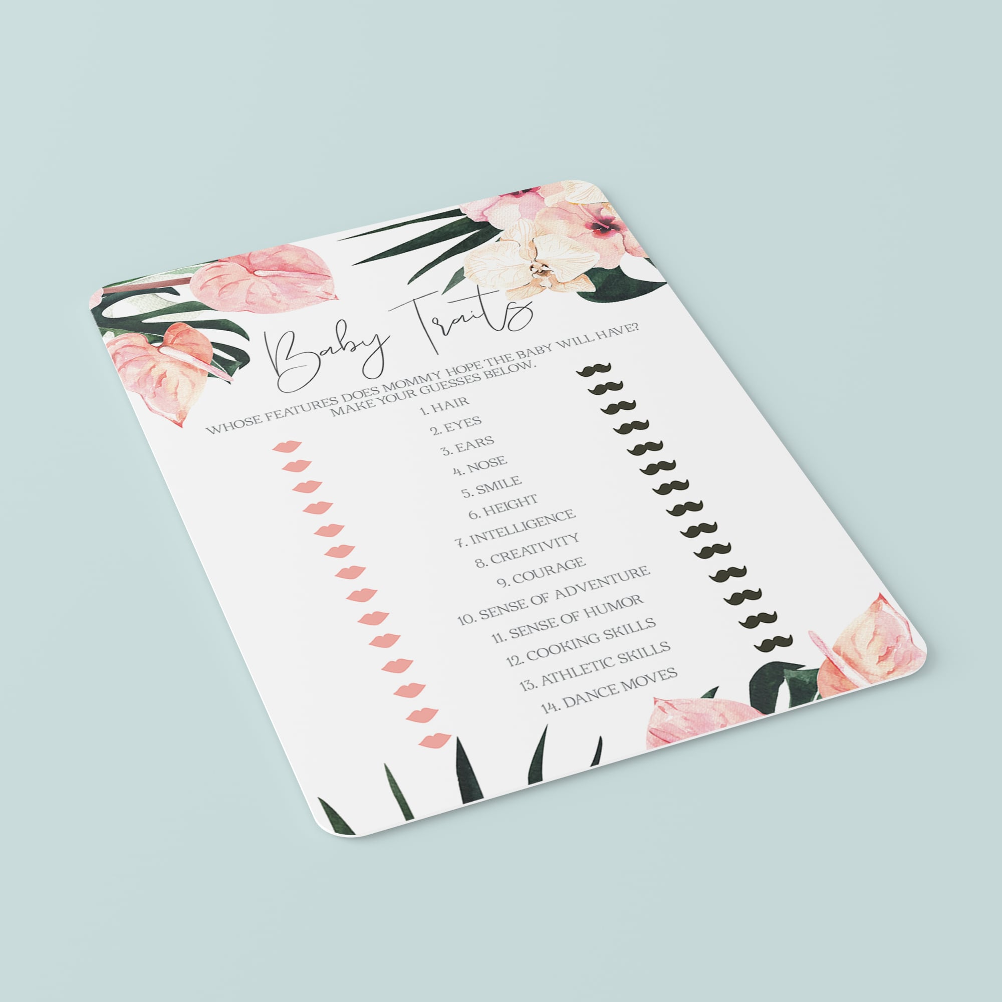 Play Baby Traits with this summer baby shower game card and get everyone thinking about what the new baby will look like!