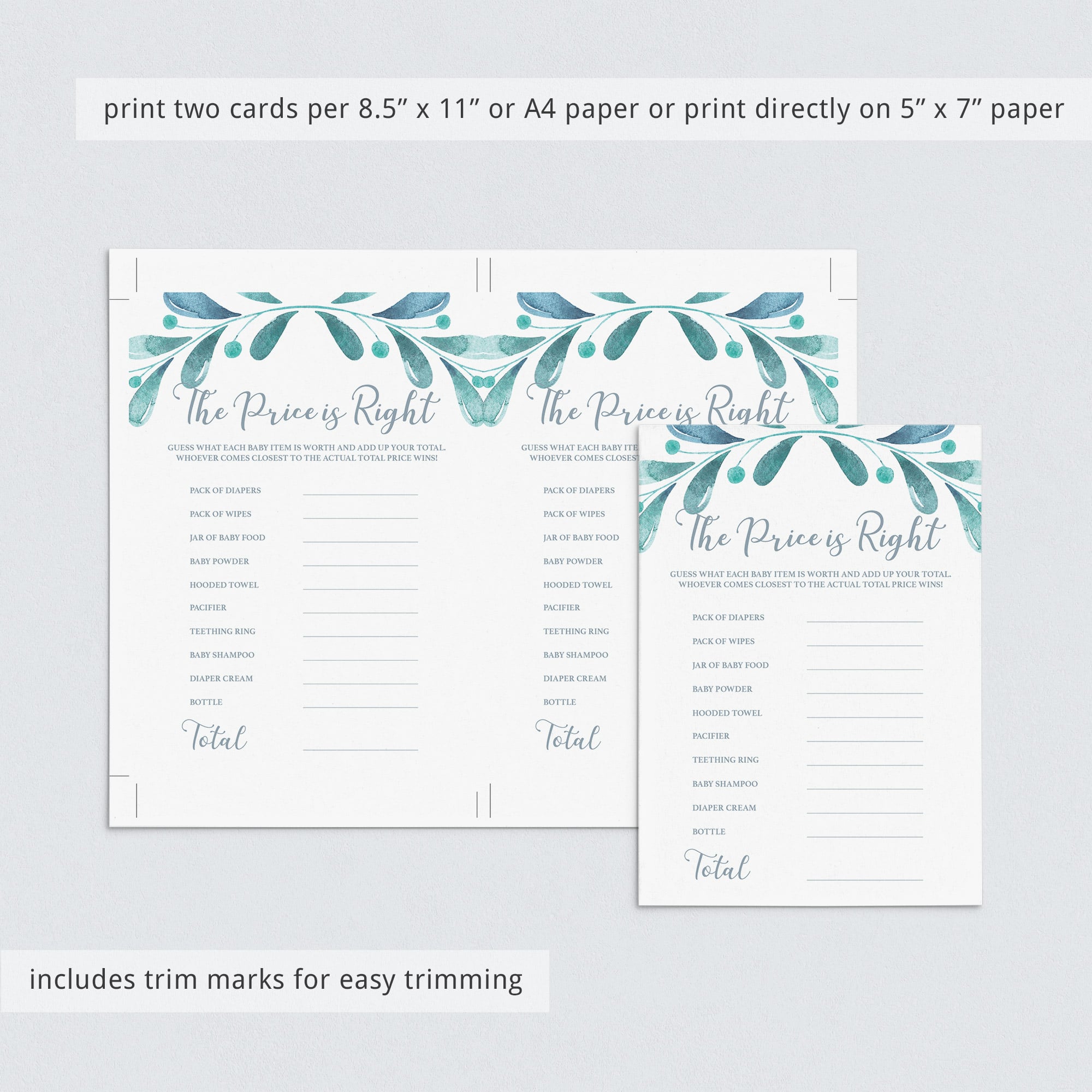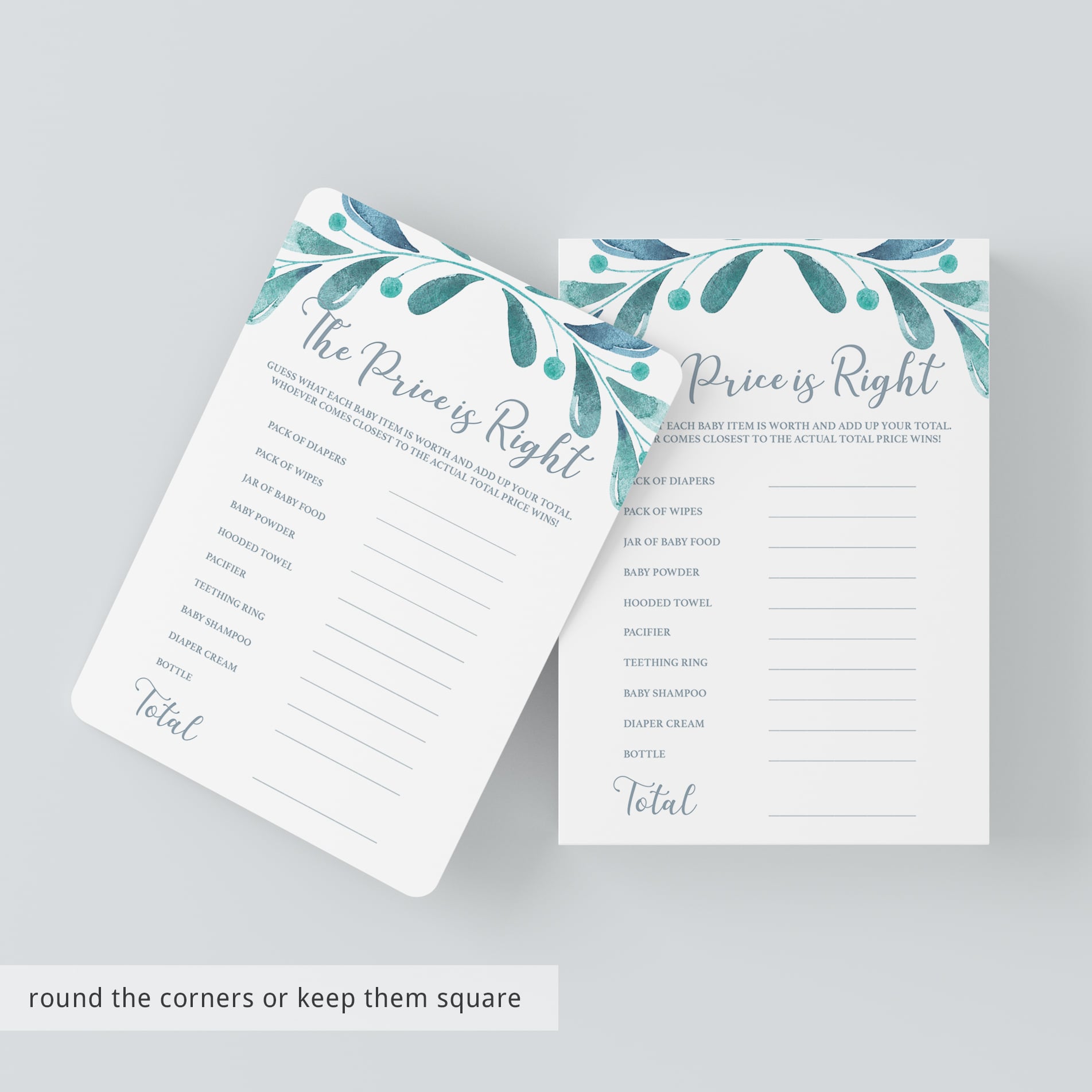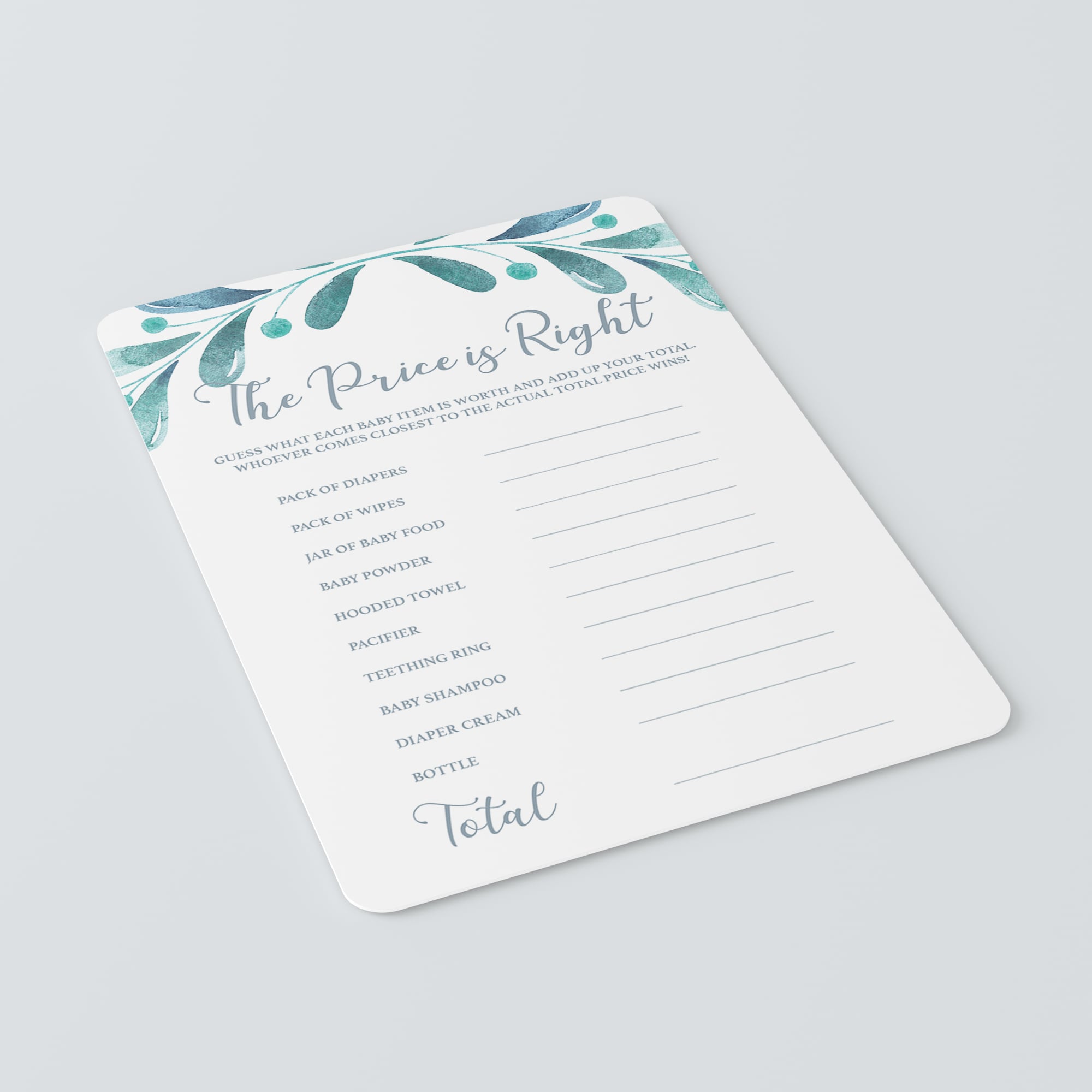Play The Price Is Right at your baby shower with these gorgeous teal and gray game cards. The cards would be perfect for any teal and gray baby shower and will create an enjoyable moment for all of your guests.