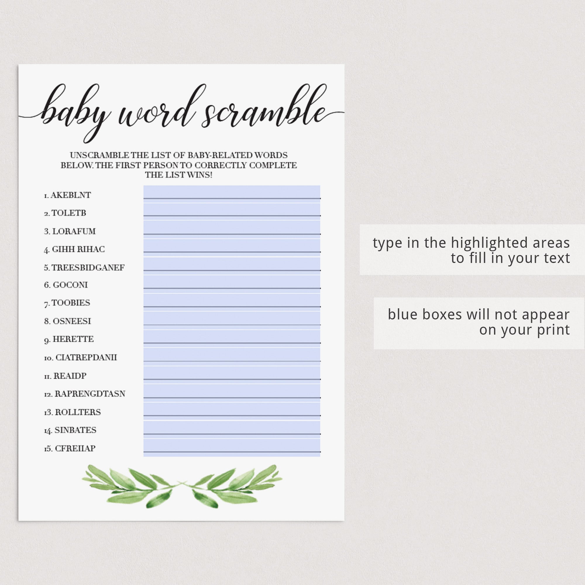 And if you are hosting a virtual baby shower, you can email the files to friends and family and have them print the games at home or fill in the games electronically in the free version of Adobe Acrobat Reader.