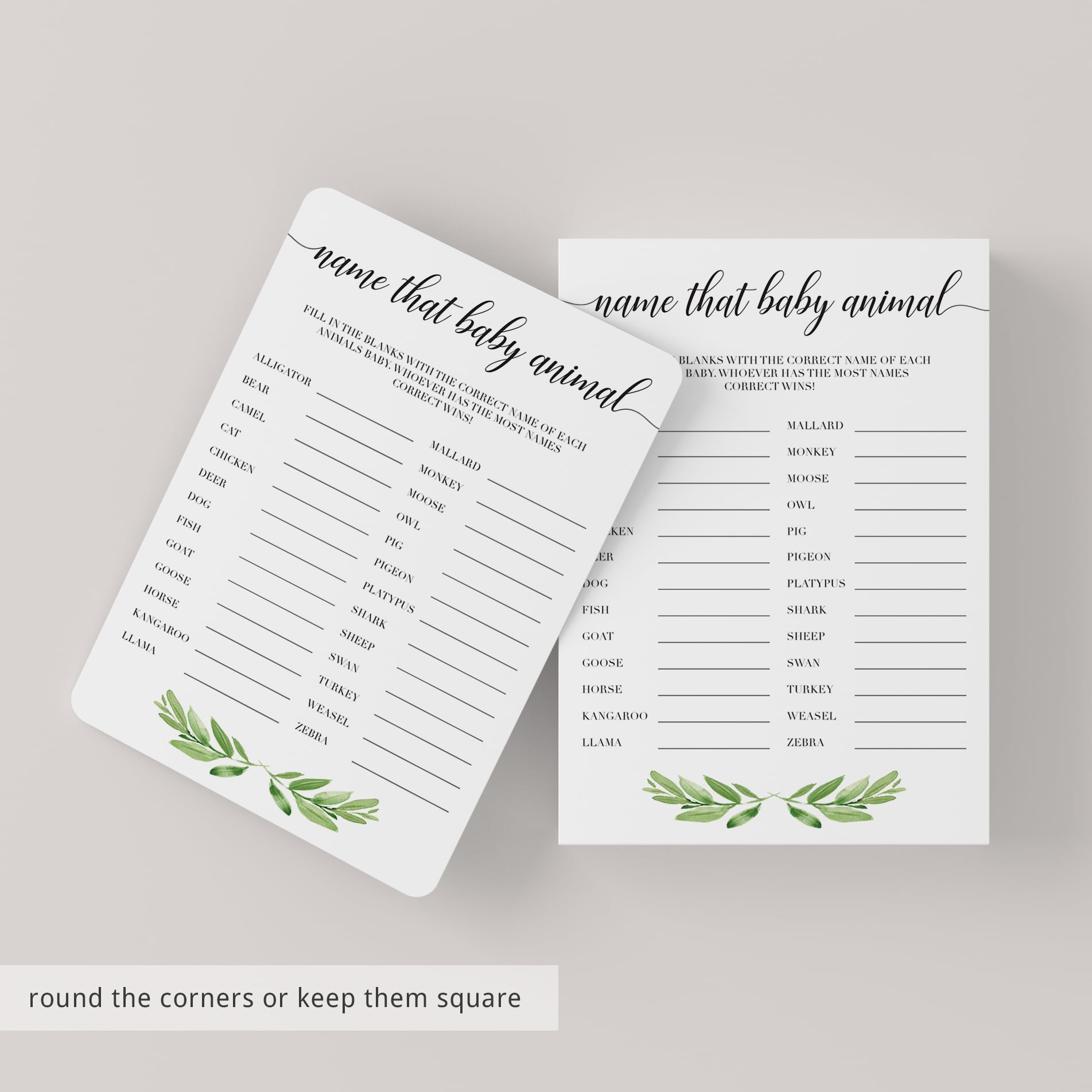 Entertain your baby shower guests with this fun package of baby shower games with watercolor leaves. The greenery game bundle includes everything you need to entertain large groups with a variety of activities.