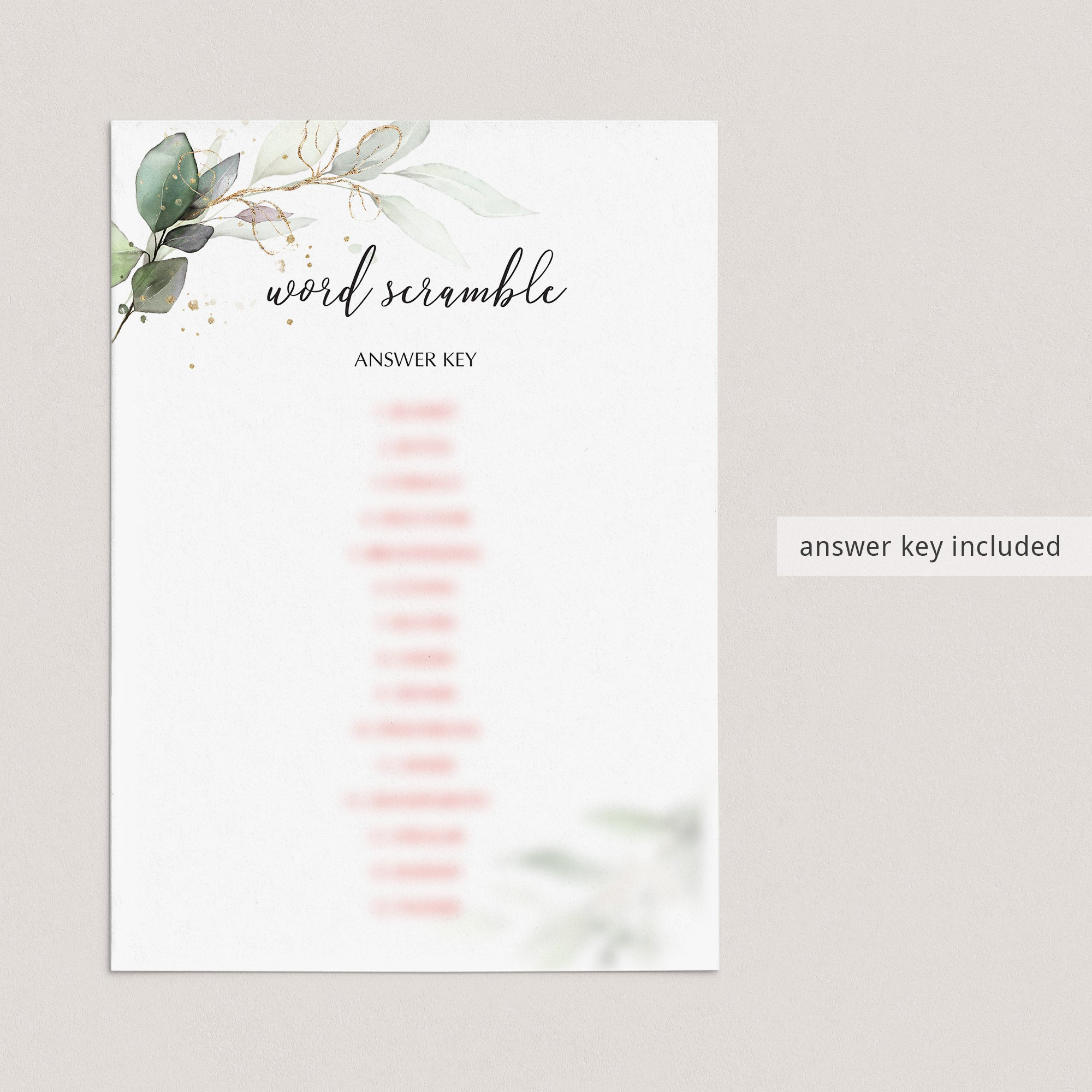 Just in case you have trouble figuring out the scrambled words, an answer key is included.