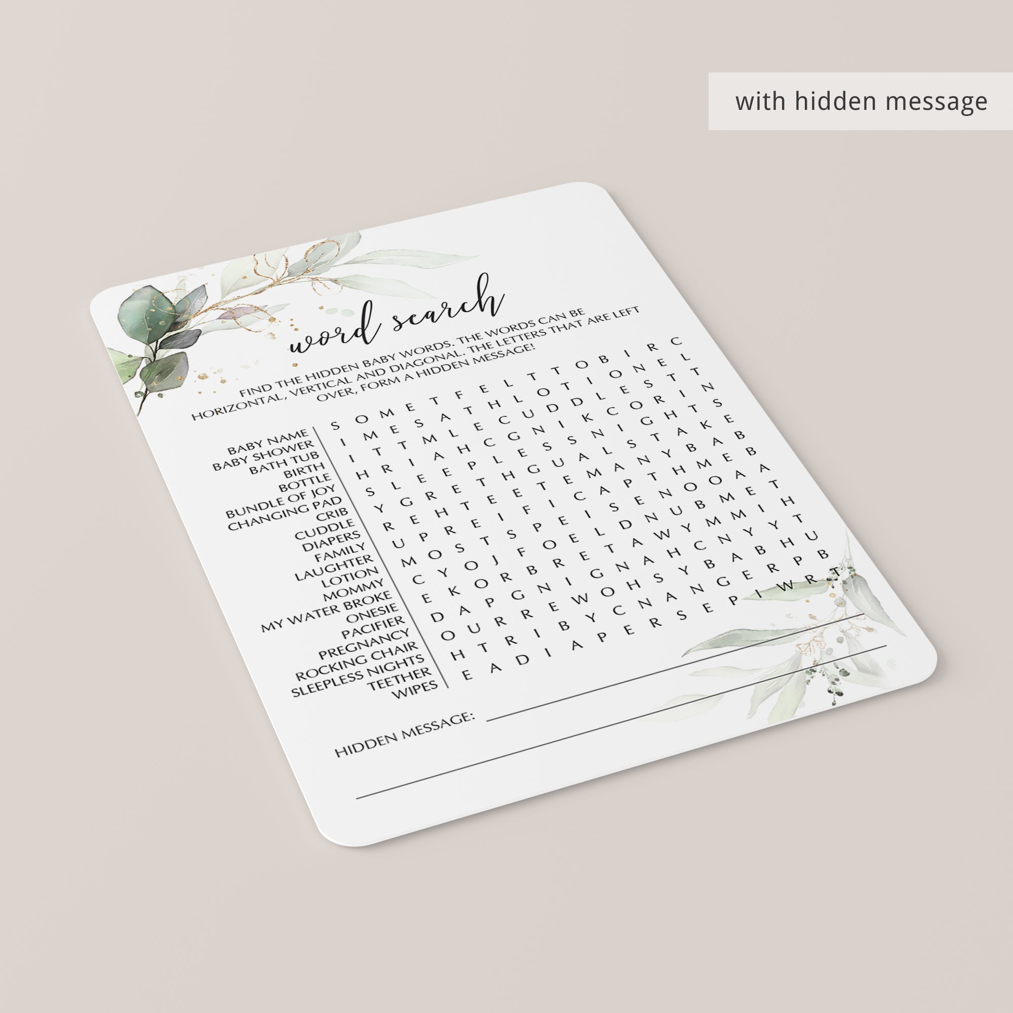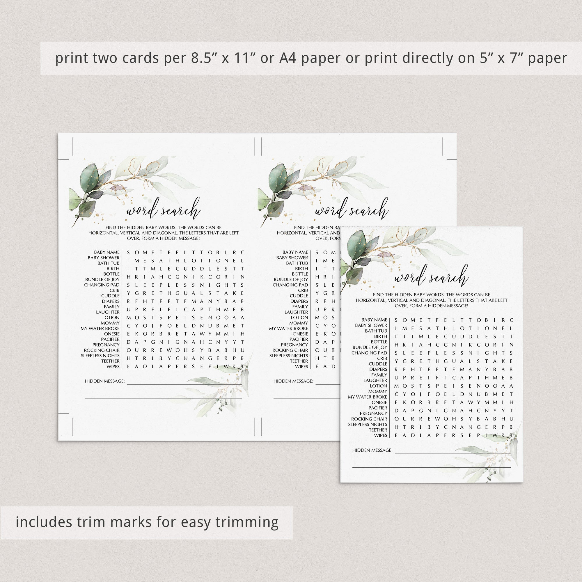 This greenery gold Word Search baby shower game will sure be a hit at your next party!