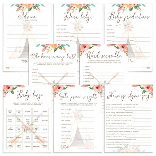 Are you hosting an Aztec themed baby shower to celebrate the arrival of a baby girl? Entertain your guests with this gorgeous pack of pink floral baby shower games. The game pack with watercolor flowers, teepees and arrows includes everything you need to entertain your guests with...- $14.99