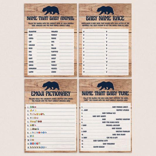 Entertain your baby party guests with these woodland themed baby shower games with baby bear. This unique game pack includes everything you need to entertain large groups of baby shower guests with a variety of activities. It is perfect to celebrate the arrival of a baby boy.This rustic baby...- $9.99