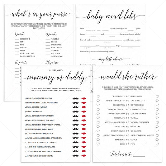 Entertain your baby shower guests with this package of simple, yet elegant, baby shower games with calligraphy font. The modern games package includes everything you need to entertain large groups with a variety of fun and interactive games. It is perfect for a gender neutral baby...- $9.99