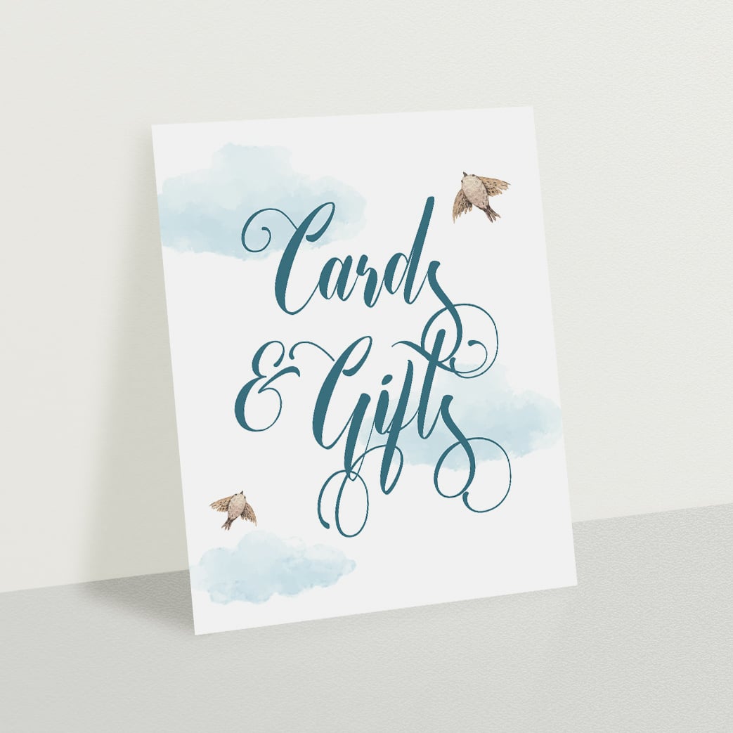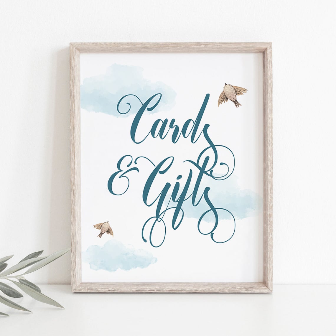 Are you hosting a blue themed party? Let your guests know where to leave their cards and gifts with this beautiful Cards and Gifts sign with watercolor clouds. This sign would look great on any event where there are gifts.