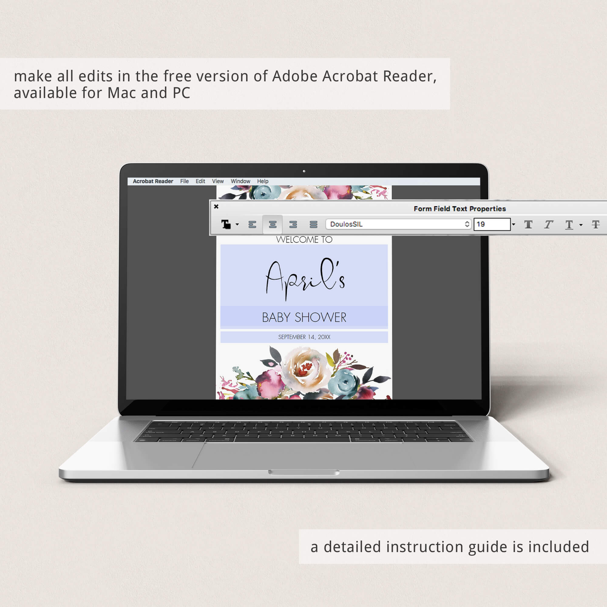 Easily personalize the welcome sign with the guest of honor's name, the type and the date of the event. A detailed instruction guide with tips & tricks on editing, trimming, paper choices and more is included.