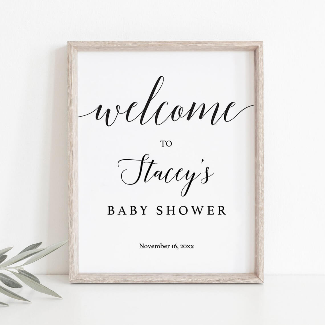 Welcome your baby shower guests to the party with this elegant welcome sign with calligraphy font!