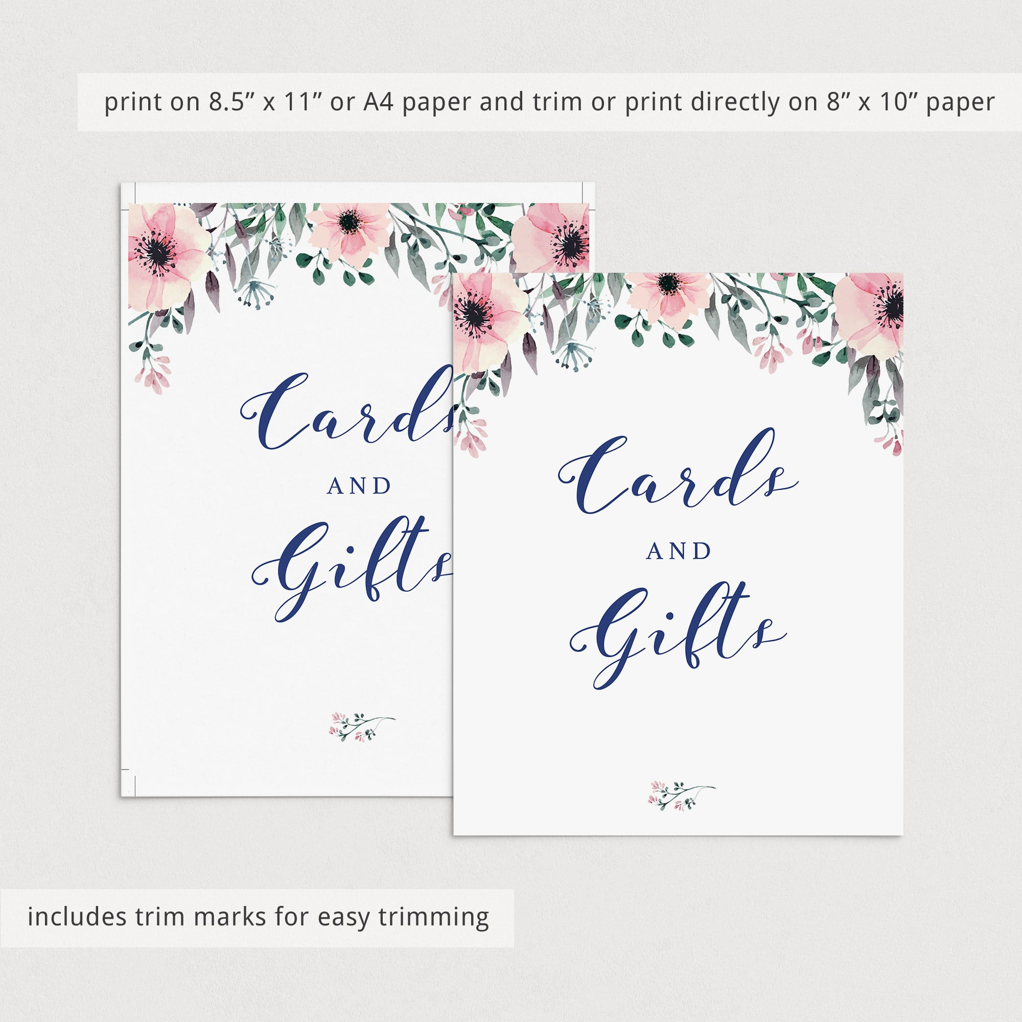 This printable sign is an instant download, so simply download and print the sign right from your computer in a matter of minutes. Frame the Cards and Gifts sign in a cute frame and place across the gift table or hang on the wall. You will create a wonderful looking floral themed party.