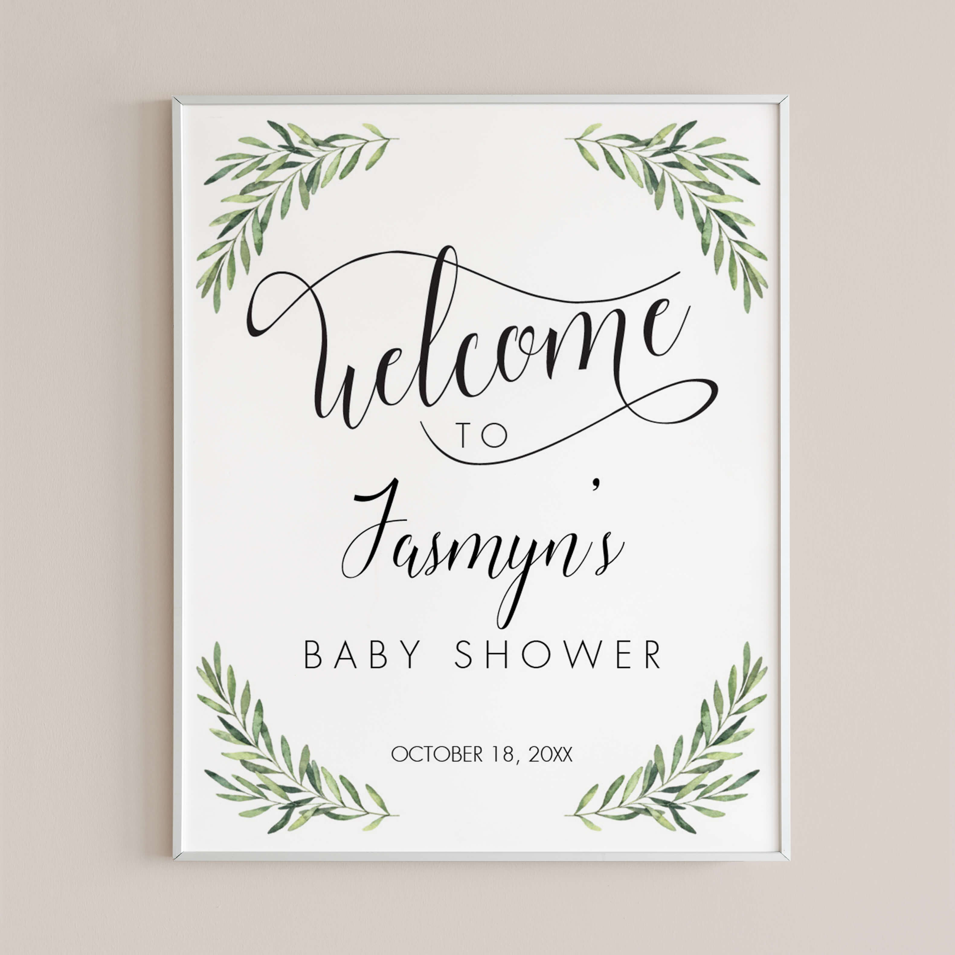 Welcome your guests to your garden baby shower with this classy greenery welcome poster! With it's watercolor olive brances and calligraphy font, the welcome poster is perfect for any gender neutral baby shower.