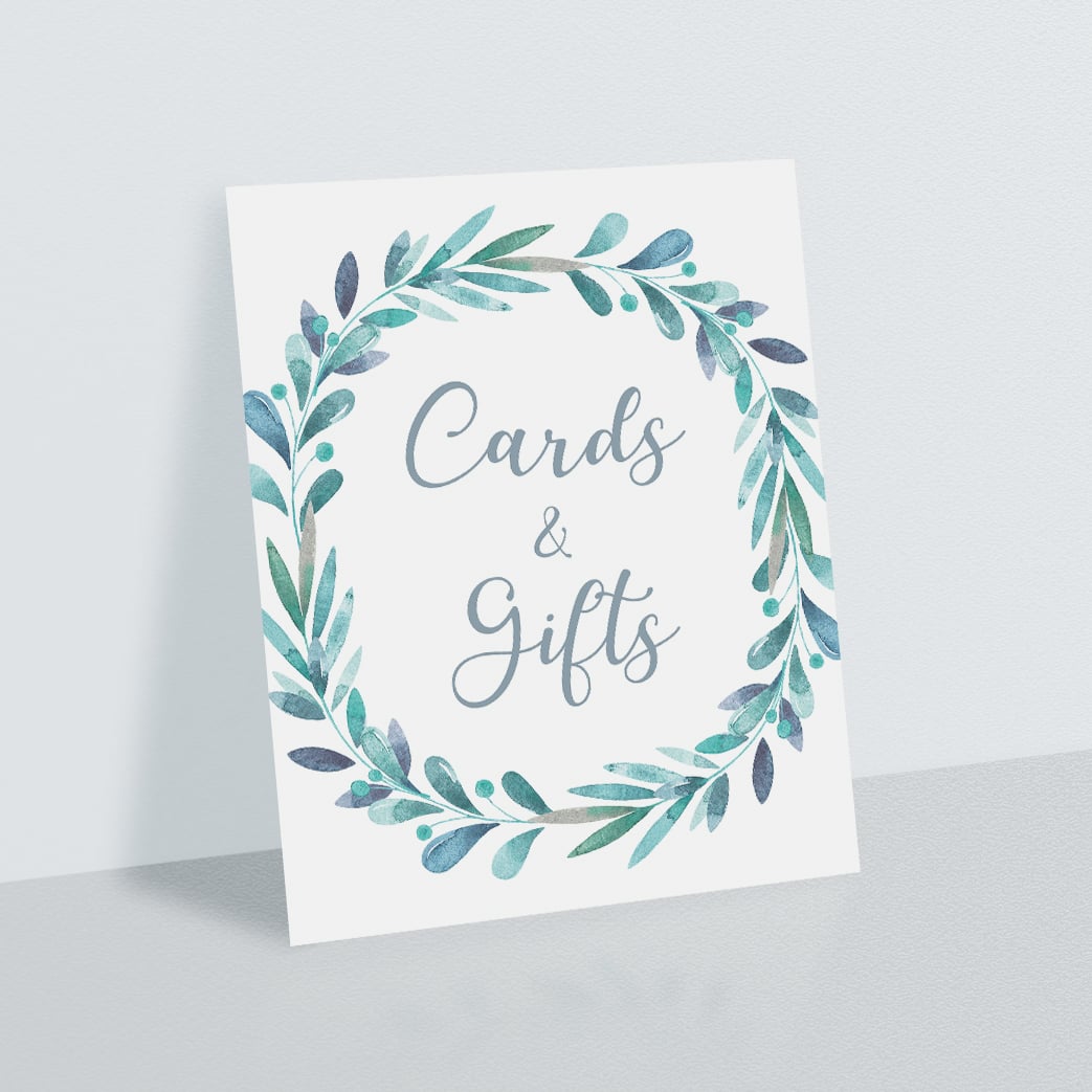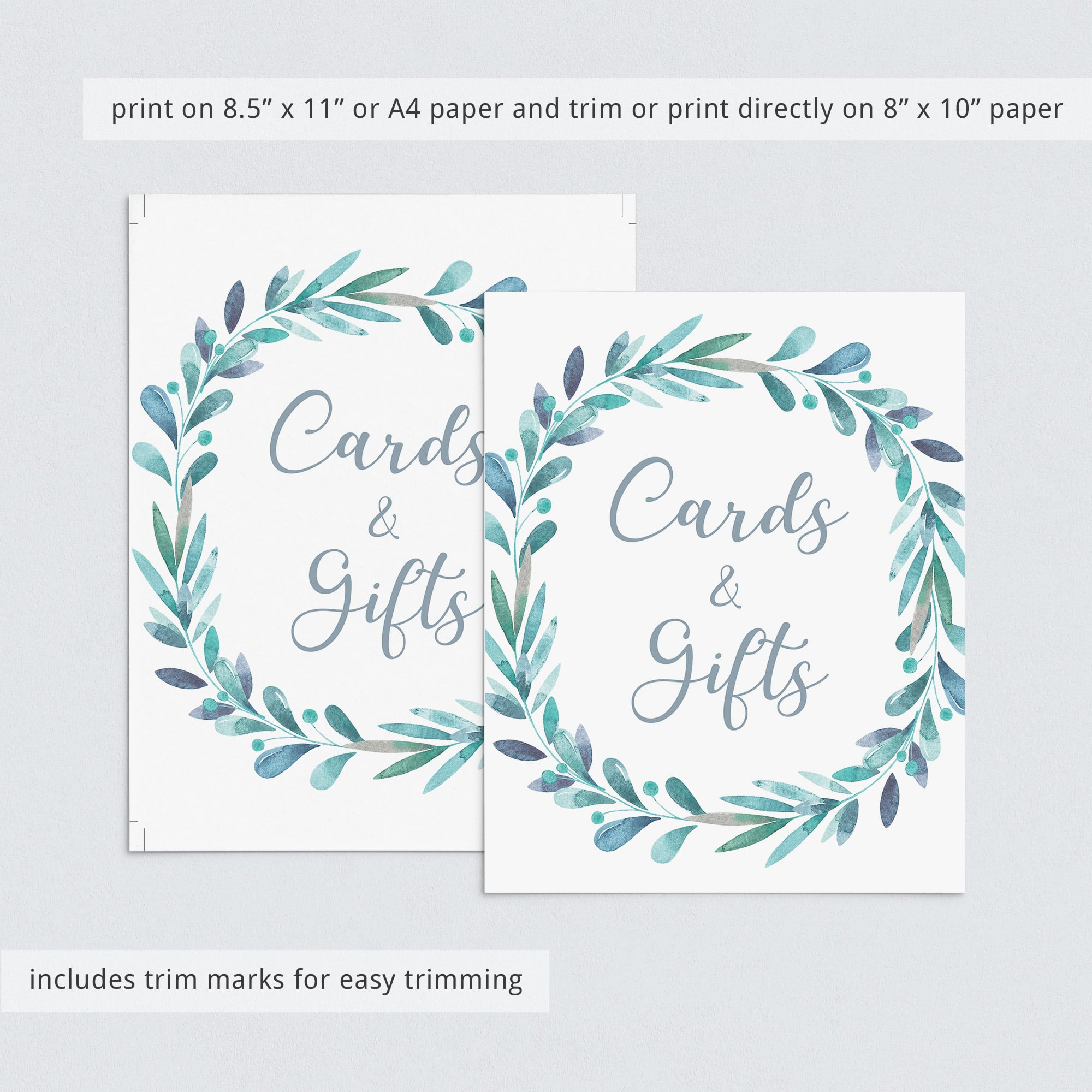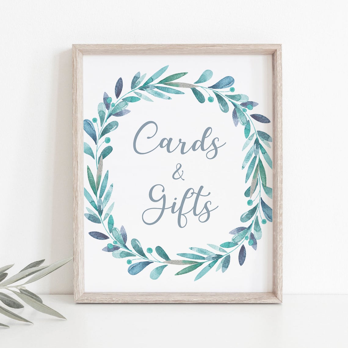 Are you hosting a winter themed party? Let your guests know where to leave their cards and gifts with this printable cards and gifts sign with watercolor wreath. This sign would look great on any event where there are gifts.
