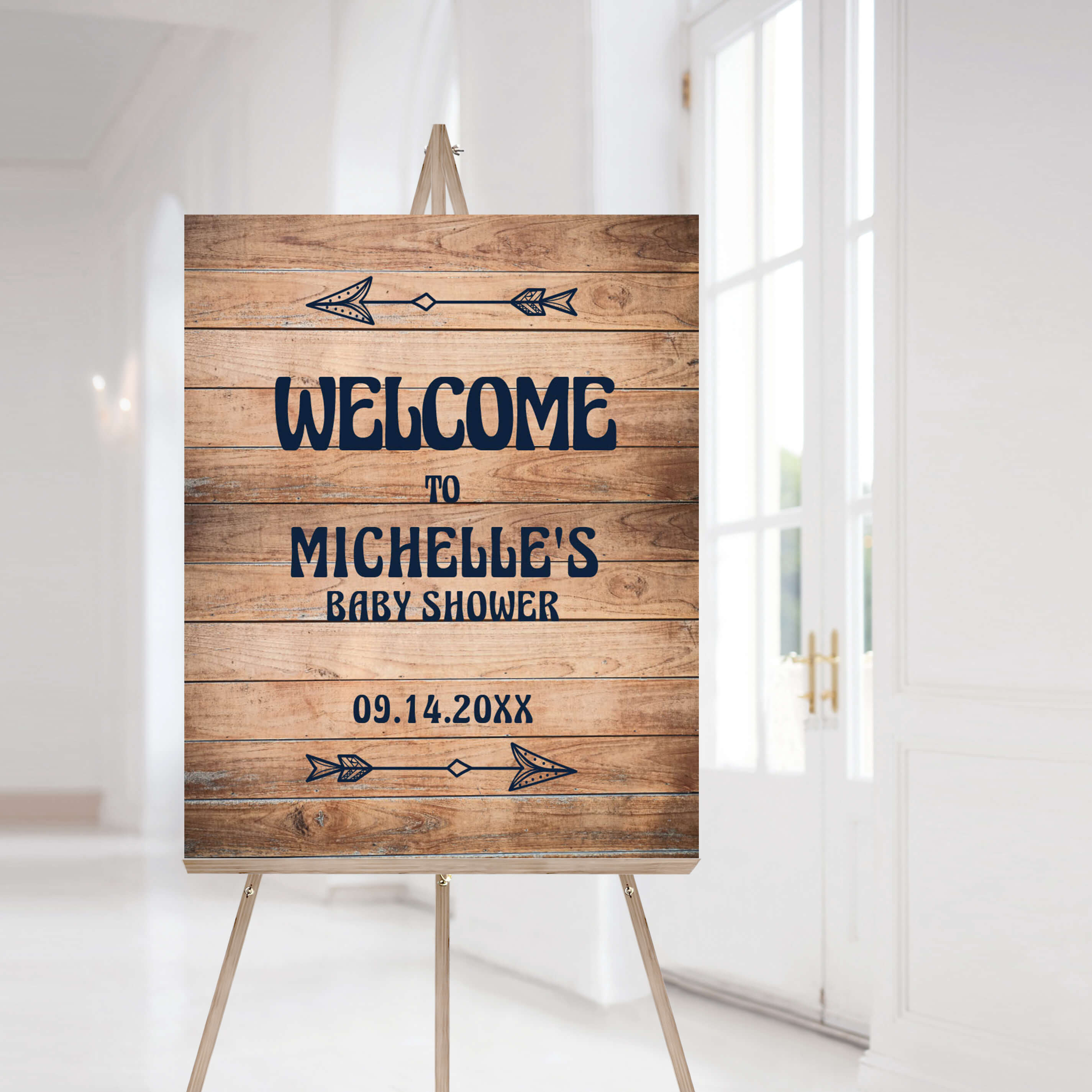 This rustic baby shower decor pack includes the following signs: