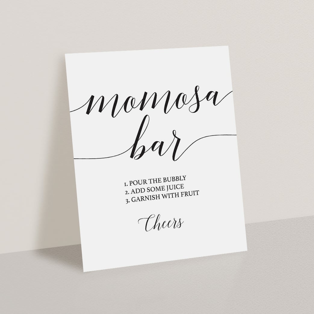 A Momosa Bar will take your baby shower to the next level. Use this simple, yet sophisticated, Momosa Bar sign with calligraphy font to decorate your Momosa Table and help guests know how to prepare their drinks. You'll easily add a lovely touch to any neutral baby shower.