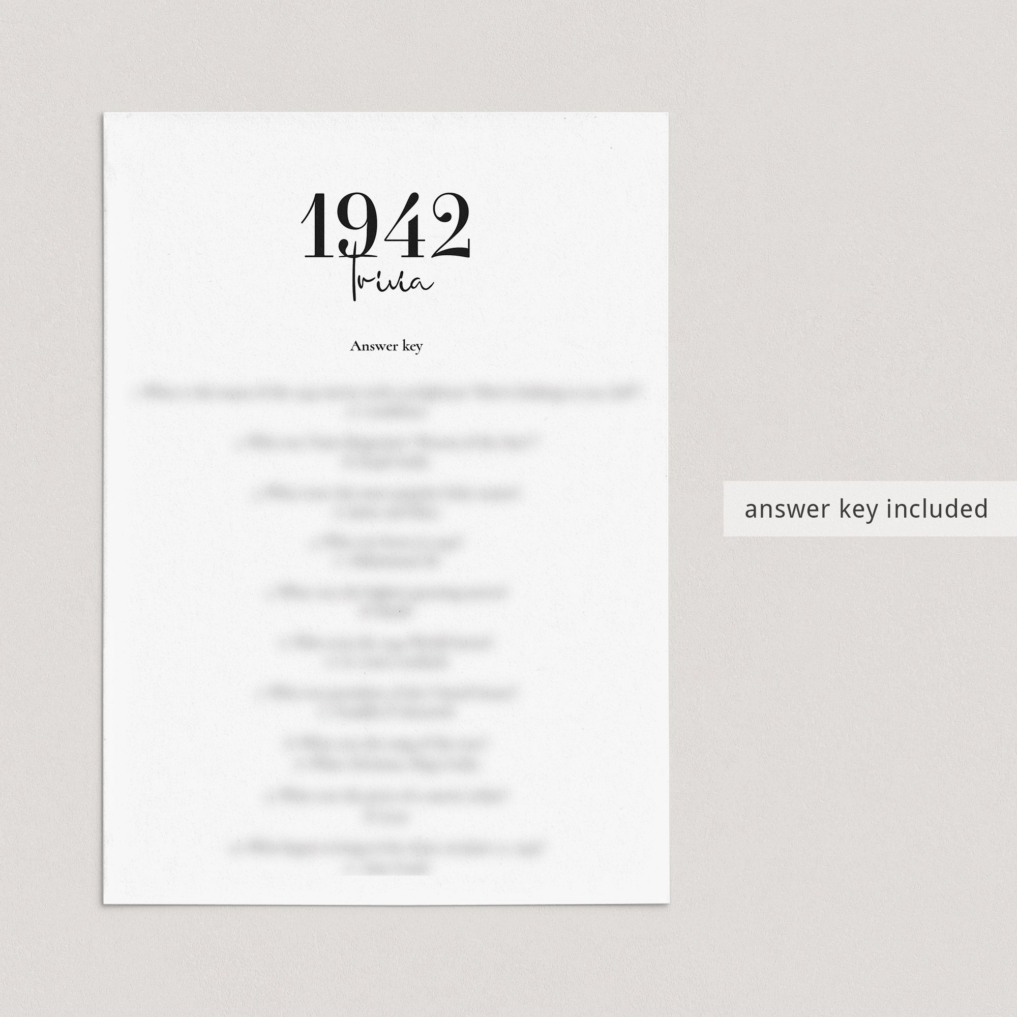 Just in case you are having trouble figuring out the answers, an answer key with the 1942 trivia answers is included.