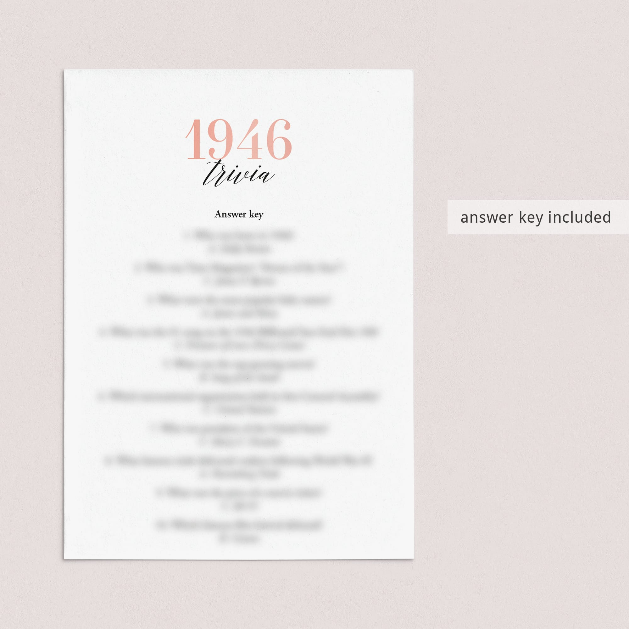 Just in case you are having trouble figuring out the answers, an answer key with the 1946 trivia answers is included.