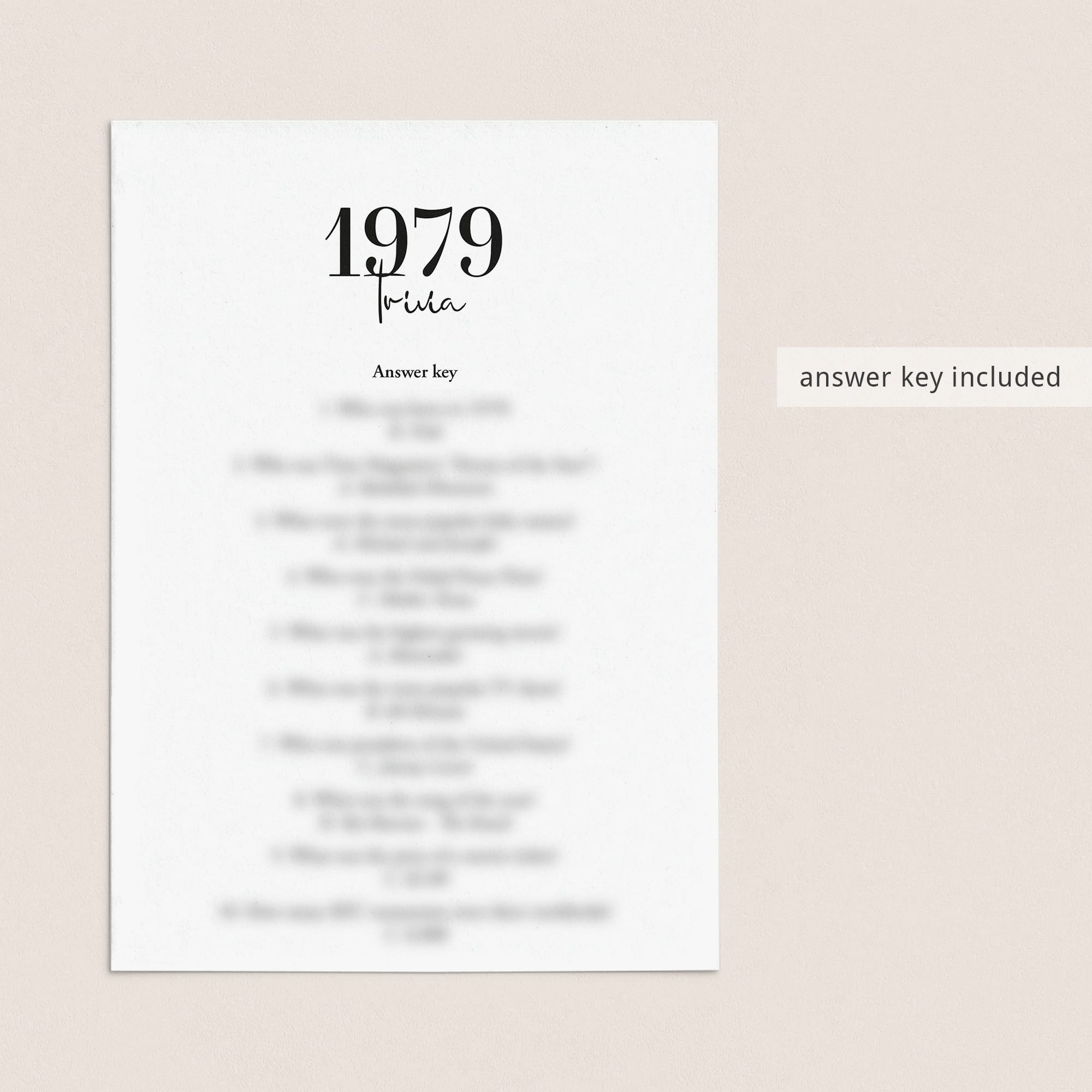 Just in case you are having trouble figuring out the answers, an answer key with the 1979 trivia answers is included.