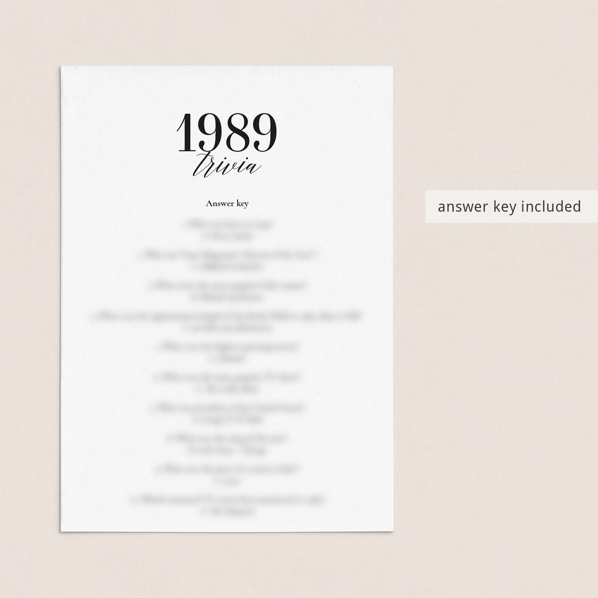 This fun facts about 1989 quiz is a digital download. After purchase you will receive a download link immediately on screen. Also within minutes of your order and payment, an e-mail will be sent to you with a link for your download.