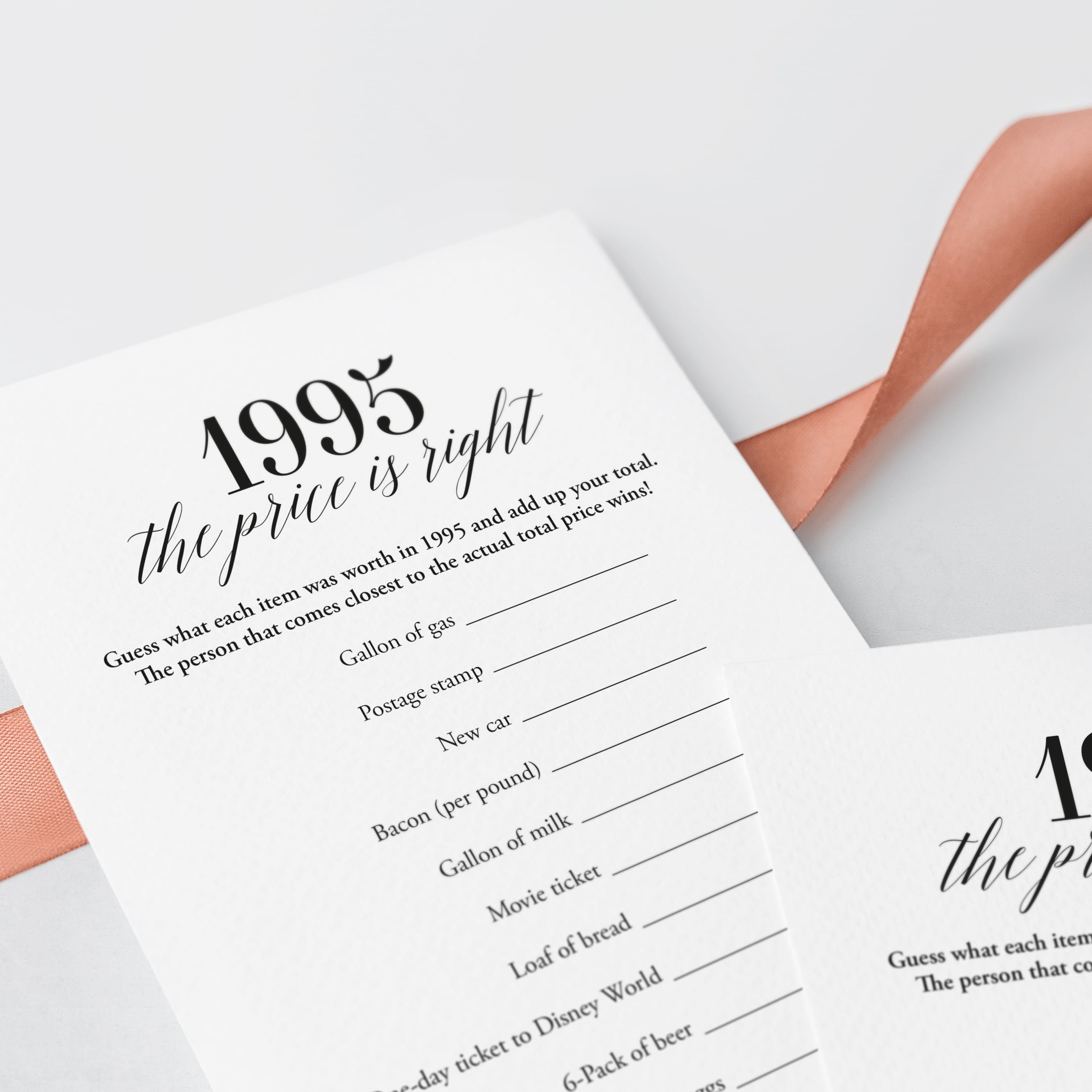 Step back in time with this fun 1995 The Price Is Right game. Whether you're celebrating a milestone anniversary, a 30th birthday party or just want to take a trip down memory lane, our 1995 The Price Is Right game is the perfect icebreaker and conversation starter that will have your guests laughing, competing and reliving the past.