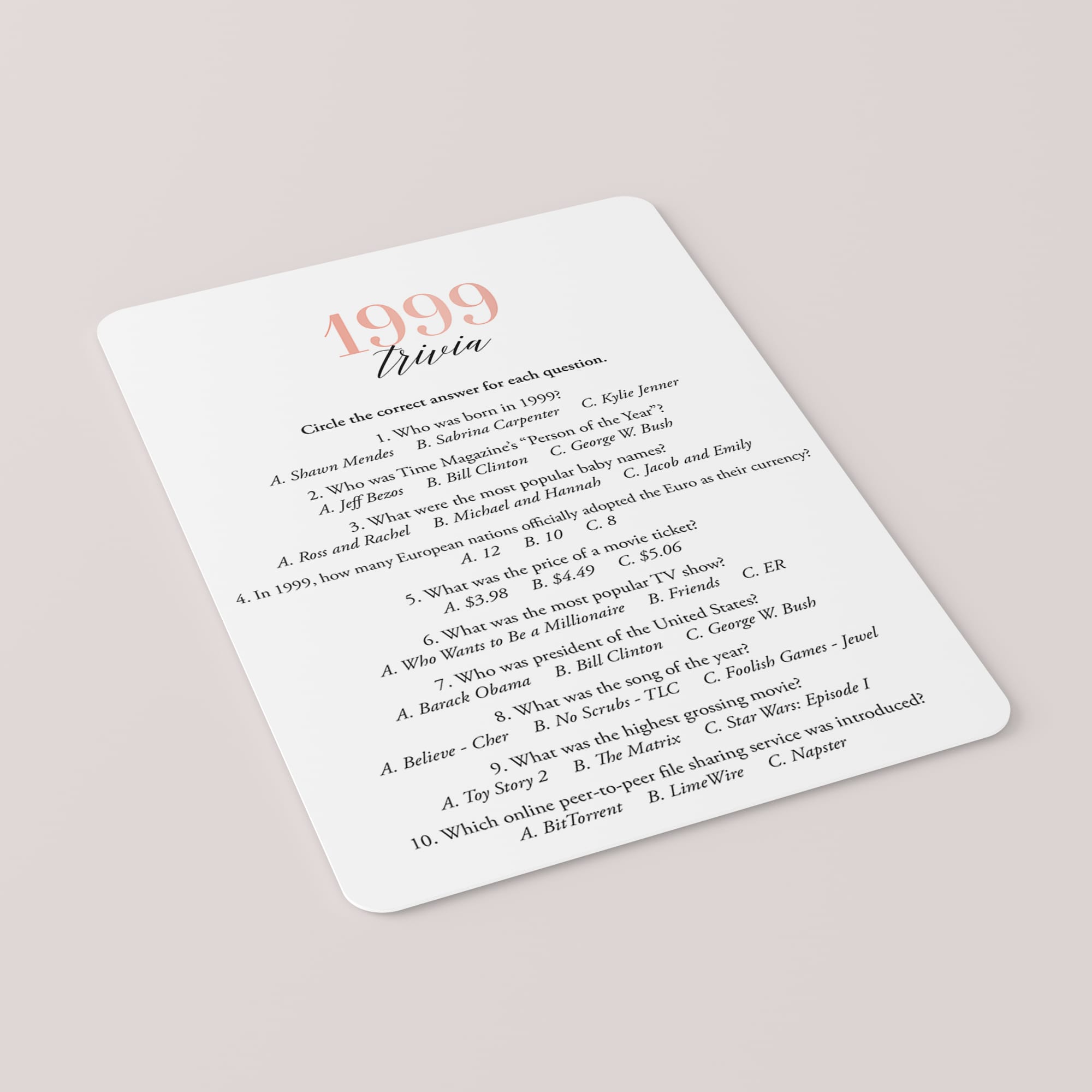 Are you looking for a fun game for a 26th birthday party? Look no further! This 1999 trivia quiz with 10 multiple choice questions is such a fun game to play with your friends and family. Test your guests how well they know 1999's pop culture. It's the perfect addition to a birthday party for a woman born in 1999.