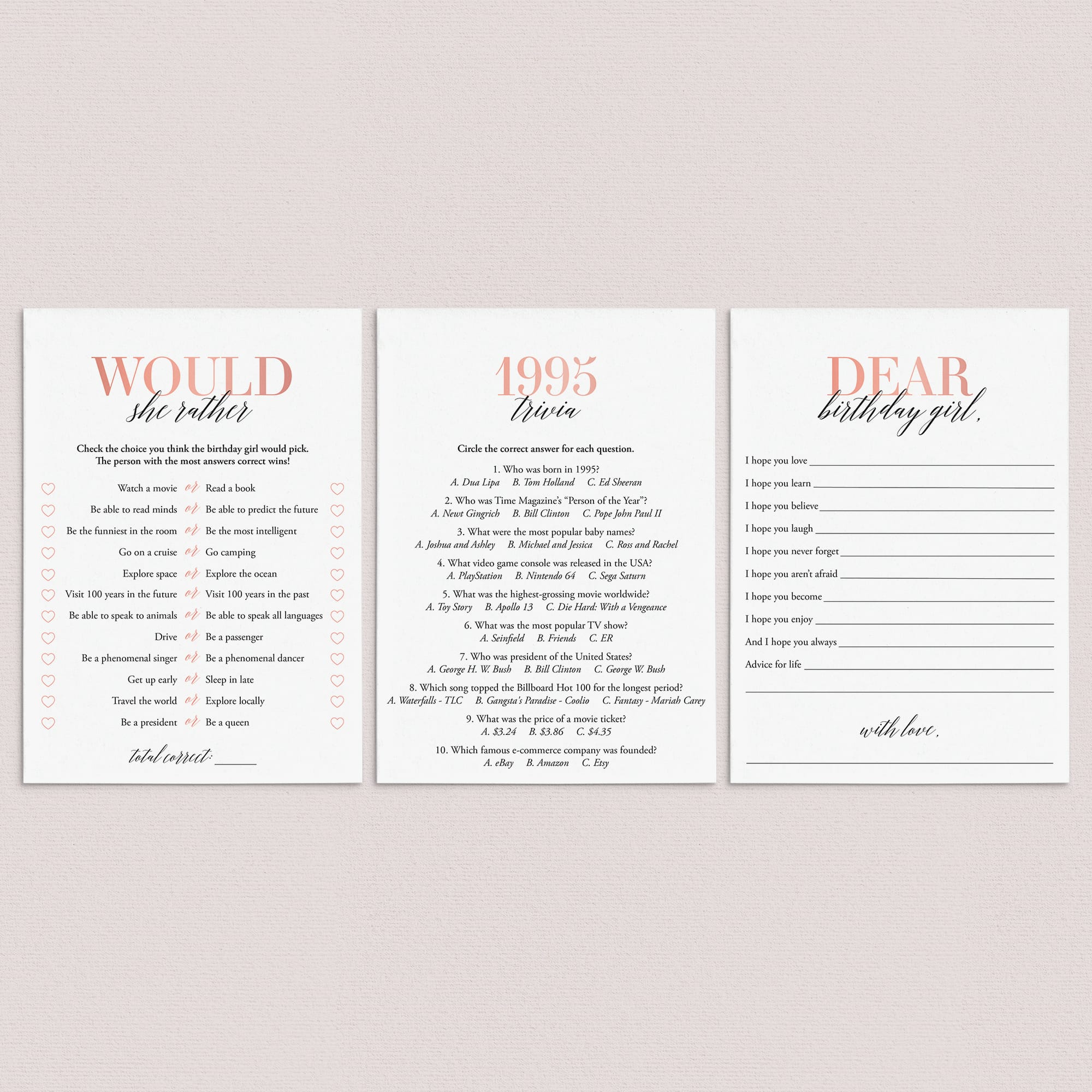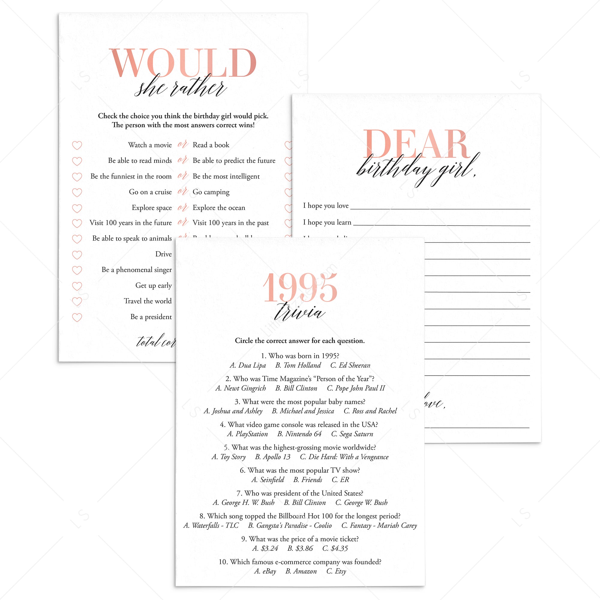 Are you looking for fun women's birthday games for a 30th birthday party? Look no further! This 30th Birthday Games Bundle for Her is the perfect addition to any birthday party for a woman born in 1995.