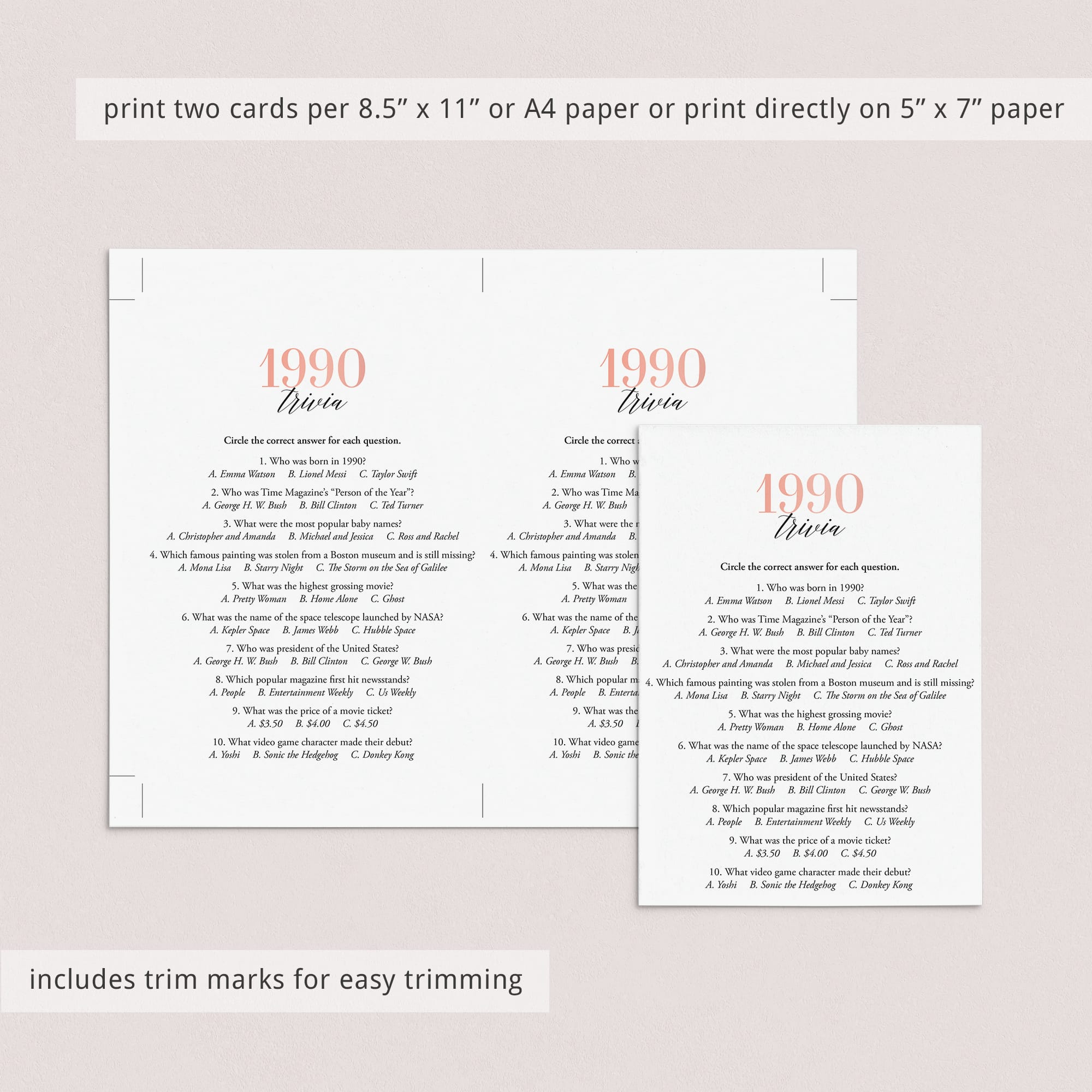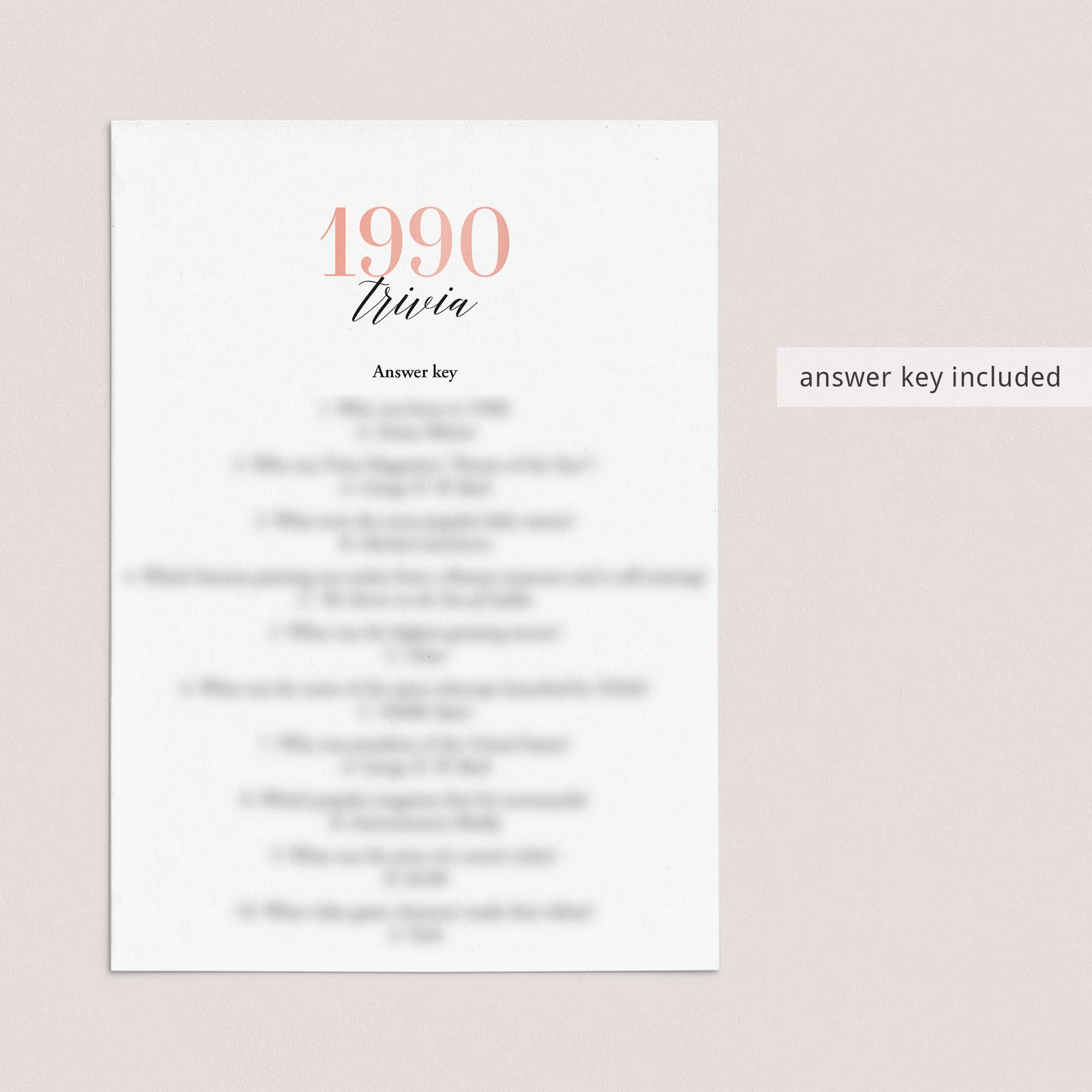 • 1990 Trivia (answer key included)