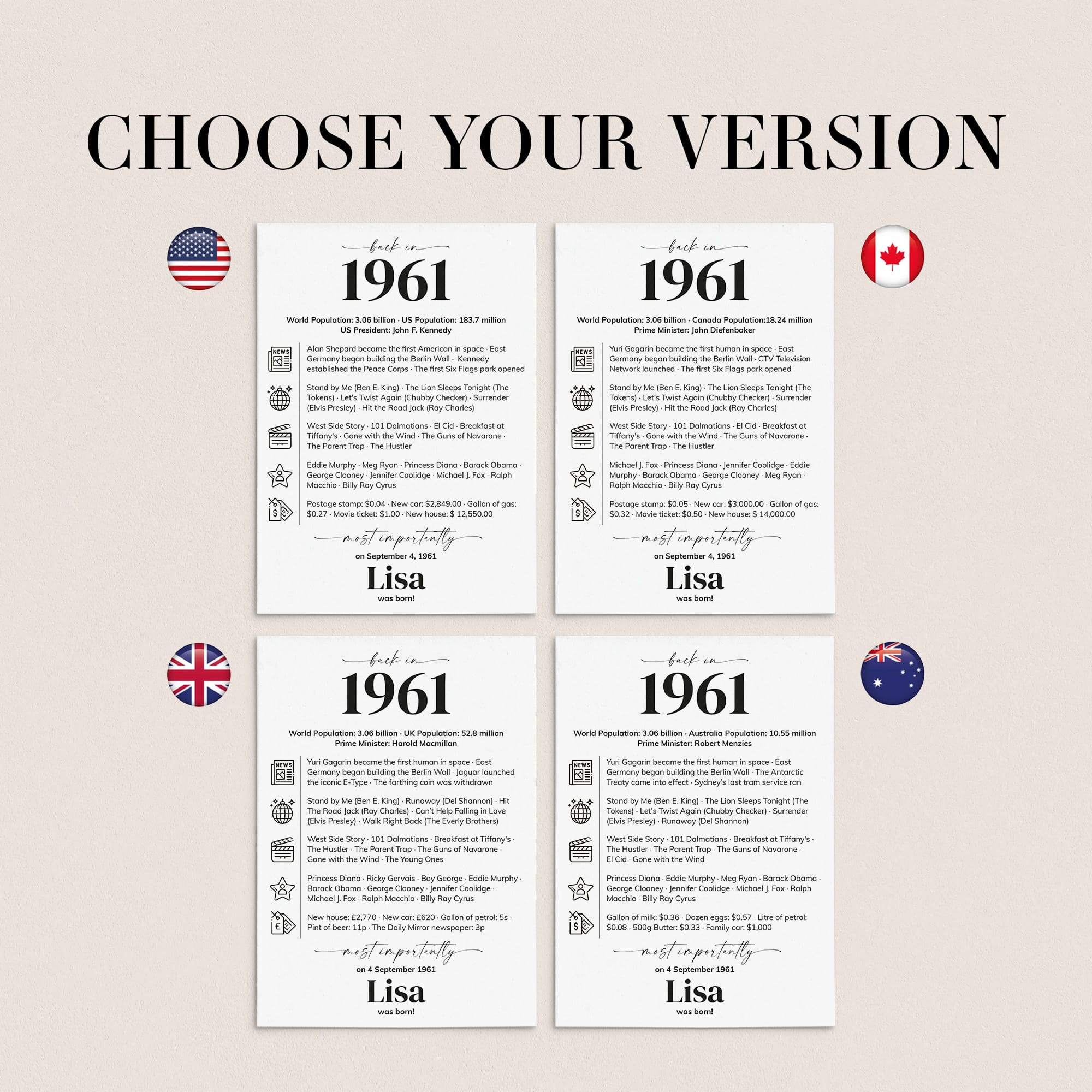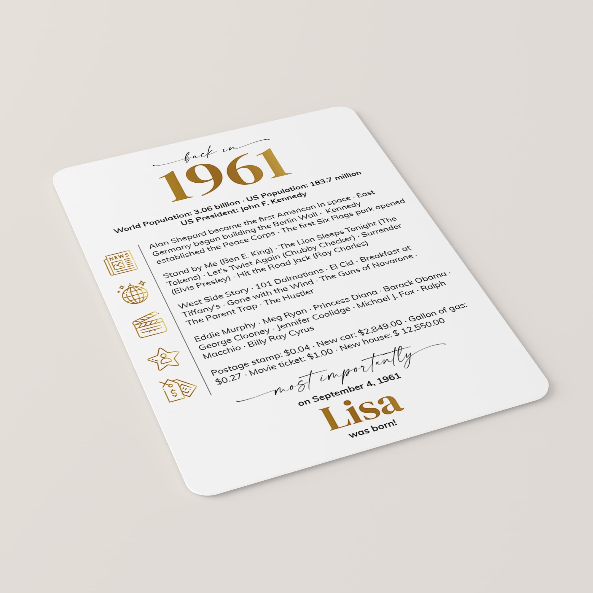 • A fun conversation starter, featuring key highlights and trivia from 1961.