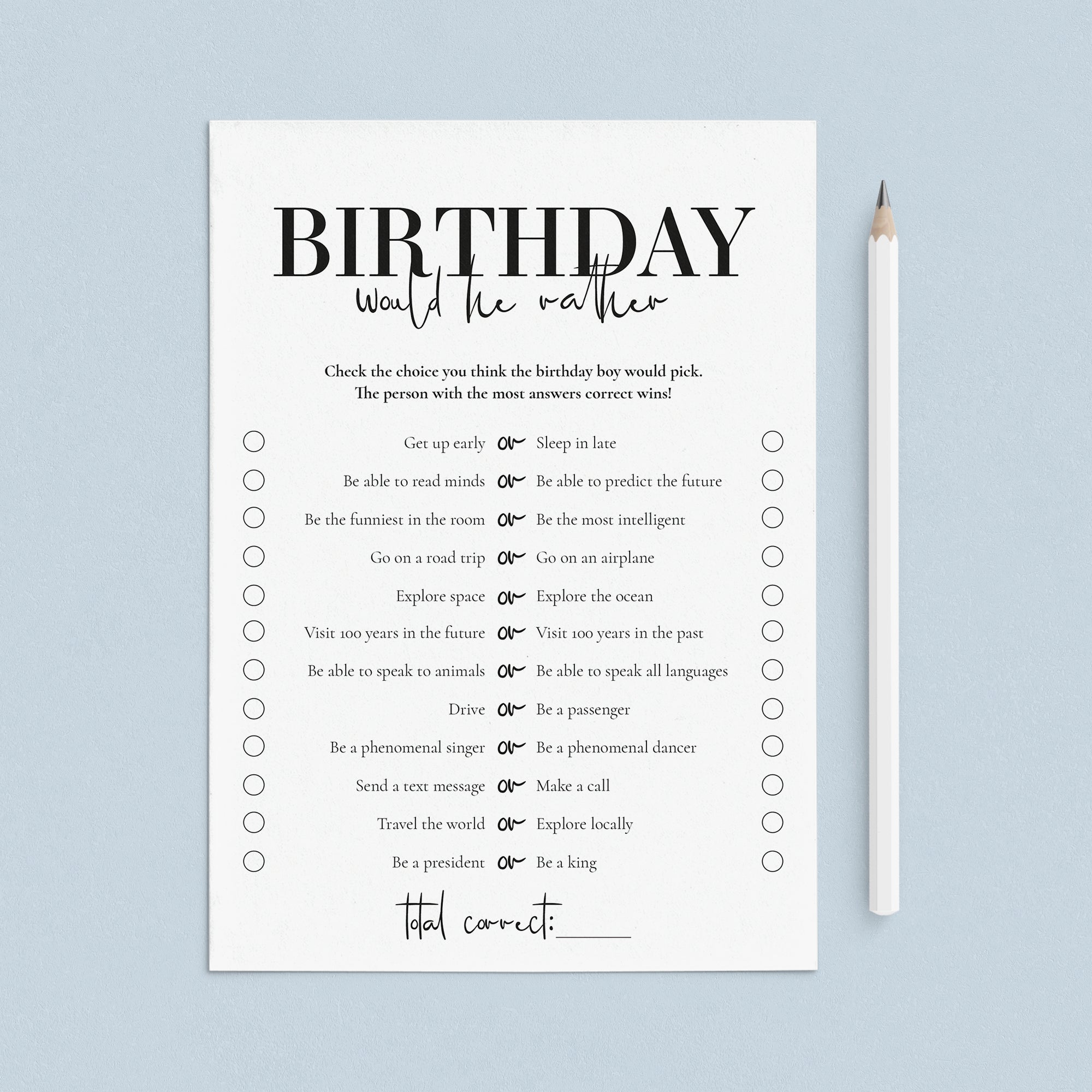 This men's 73rd Birthday Party Games Bundle includes the following games and activities: