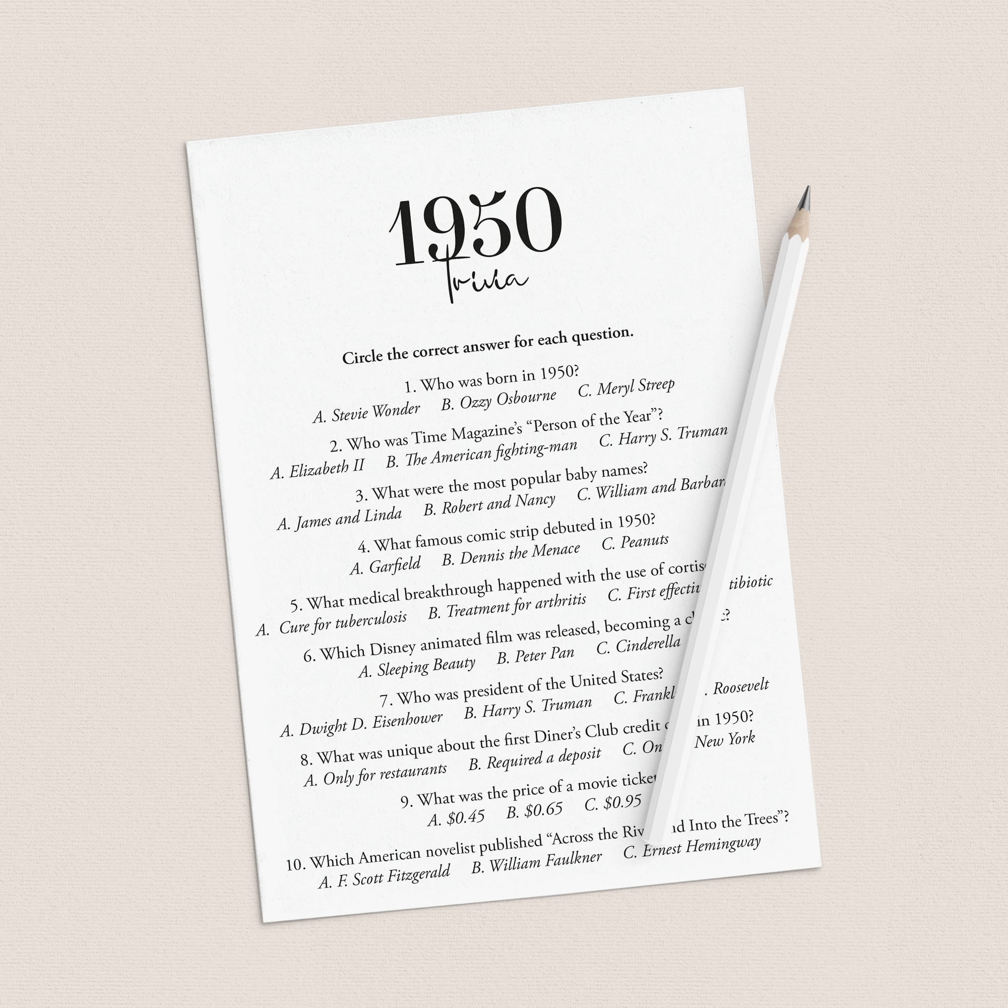 Celebrate a man’s 75th birthday in style with this 75th Birthday Games Bundle! This printable set, designed with a modern and minimalist aesthetic, includes 3 engaging and meaningful games and activities. From a nostalgic 1950s trivia game to heartfelt favorite memory cards, this bundle adds the perfect touch to his milestone celebration.