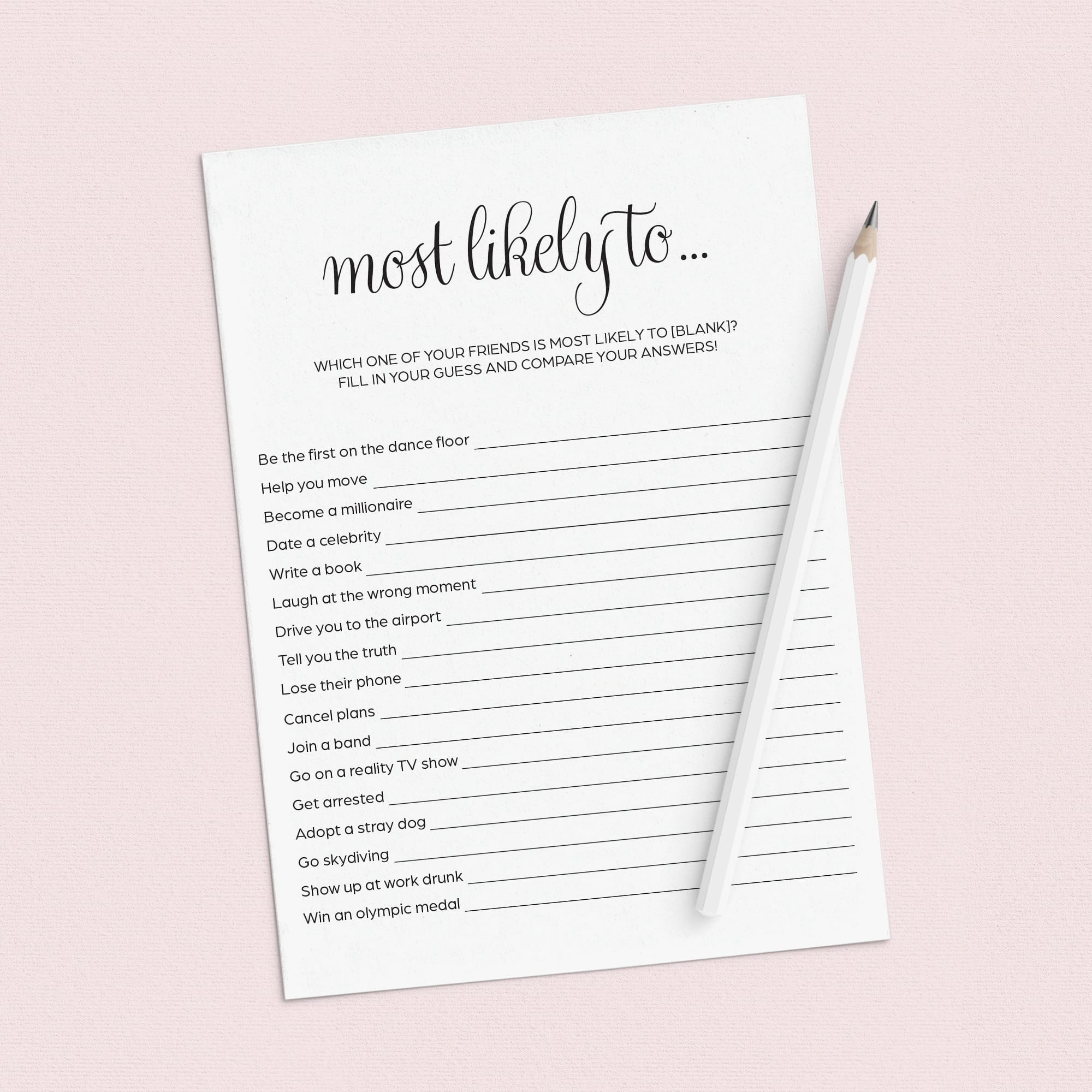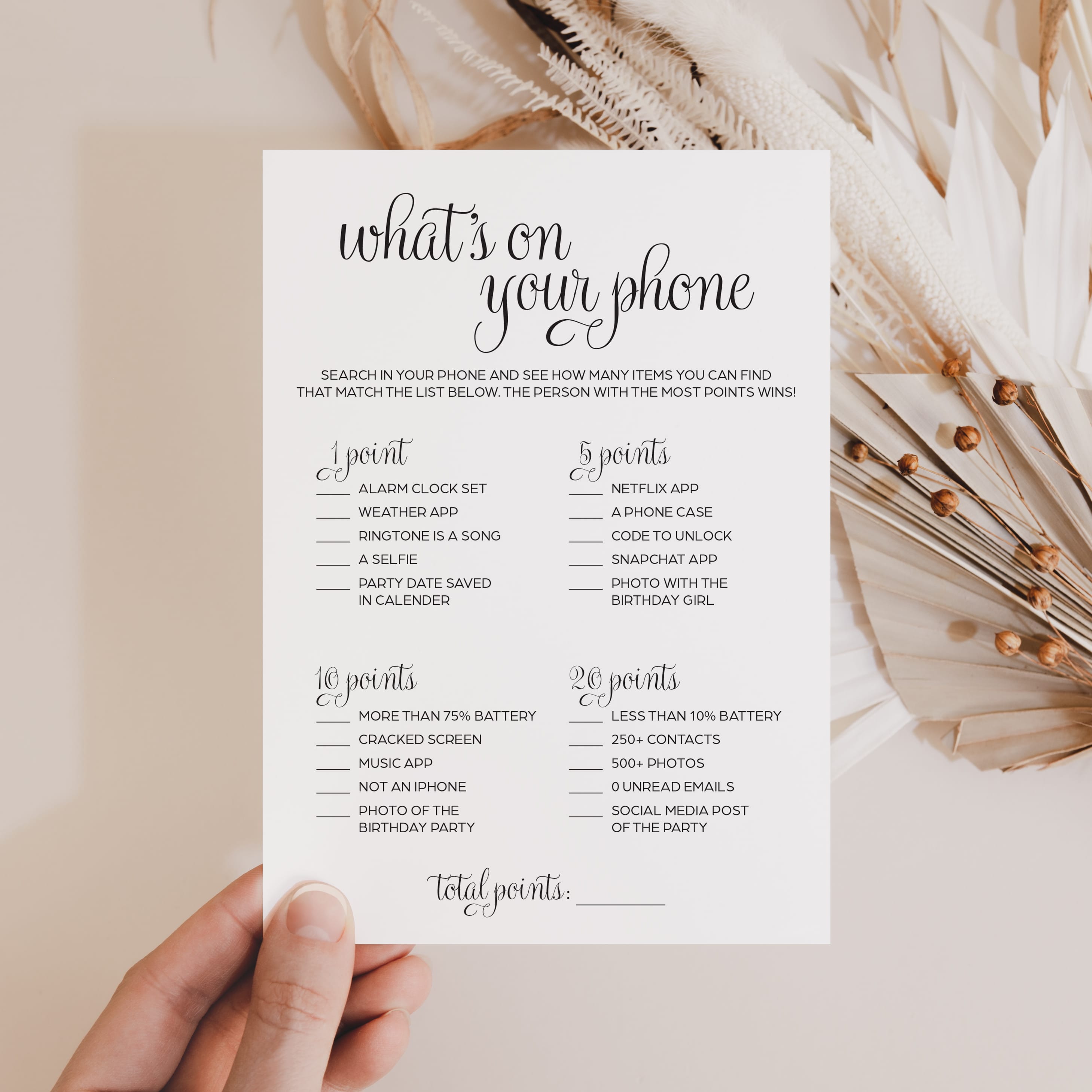 Are you hosting a women's birthday party? Add some fun to the party with this elegant adult birthday party games pack with calligraphy font. Whether you're celebrating your BFF's 30th birthday, your co-worker's turning "forty and fabulous," or your mother's turning 60 for the twelfth time, these adult birthday party games will get everyone laughing and mingling. The minimalist black and white games with calligraphy script are the perfect addition to a modern women's birthday party.