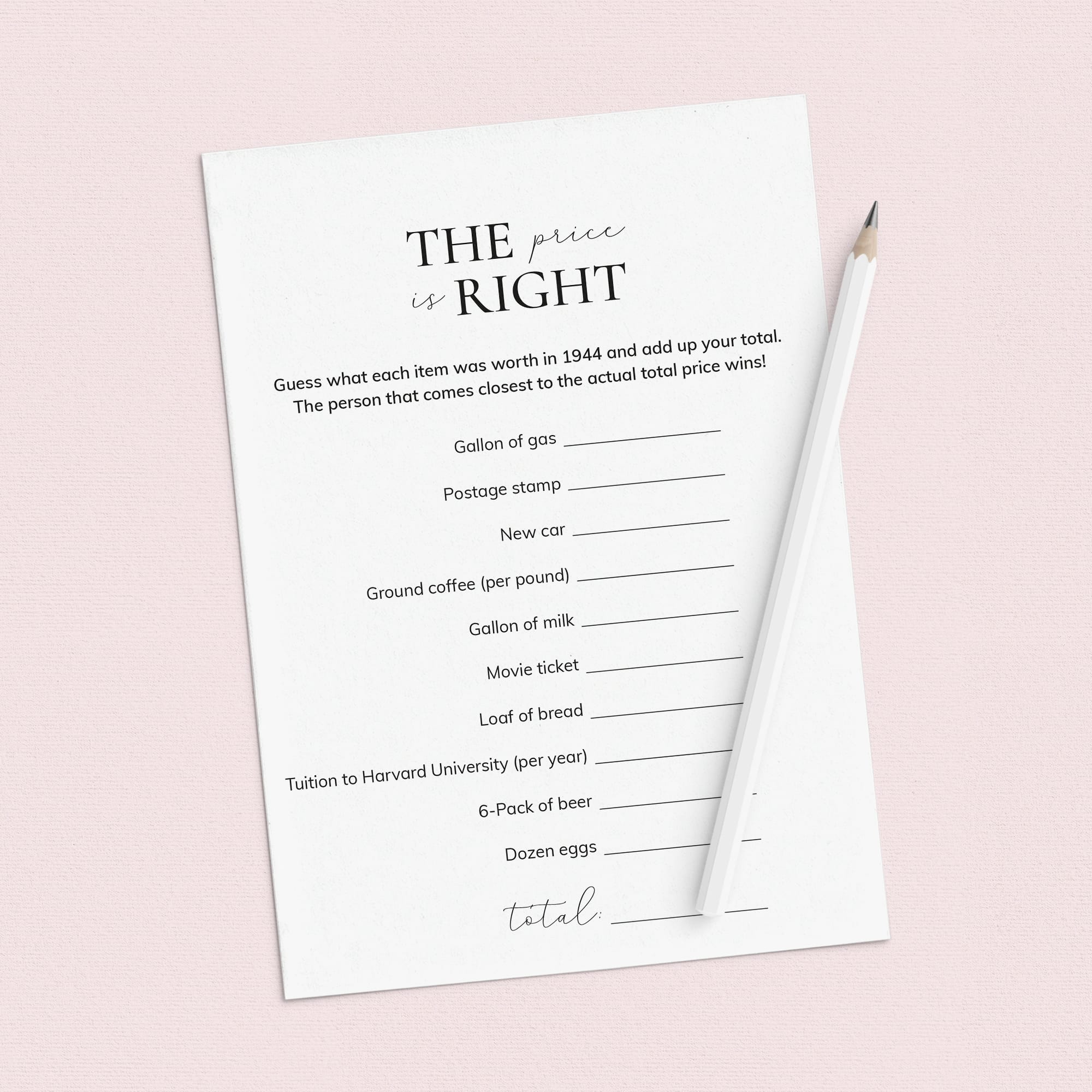 Print the games right from your computer in a matter of minutes or have the cards printed at your favorite print shop. The games have been designed in black and white. You can print on kraft paper to create a rustic look or print on colored card stock to match your party color palette. We recommend printing on a nice heavy card stock for highest quality feel.