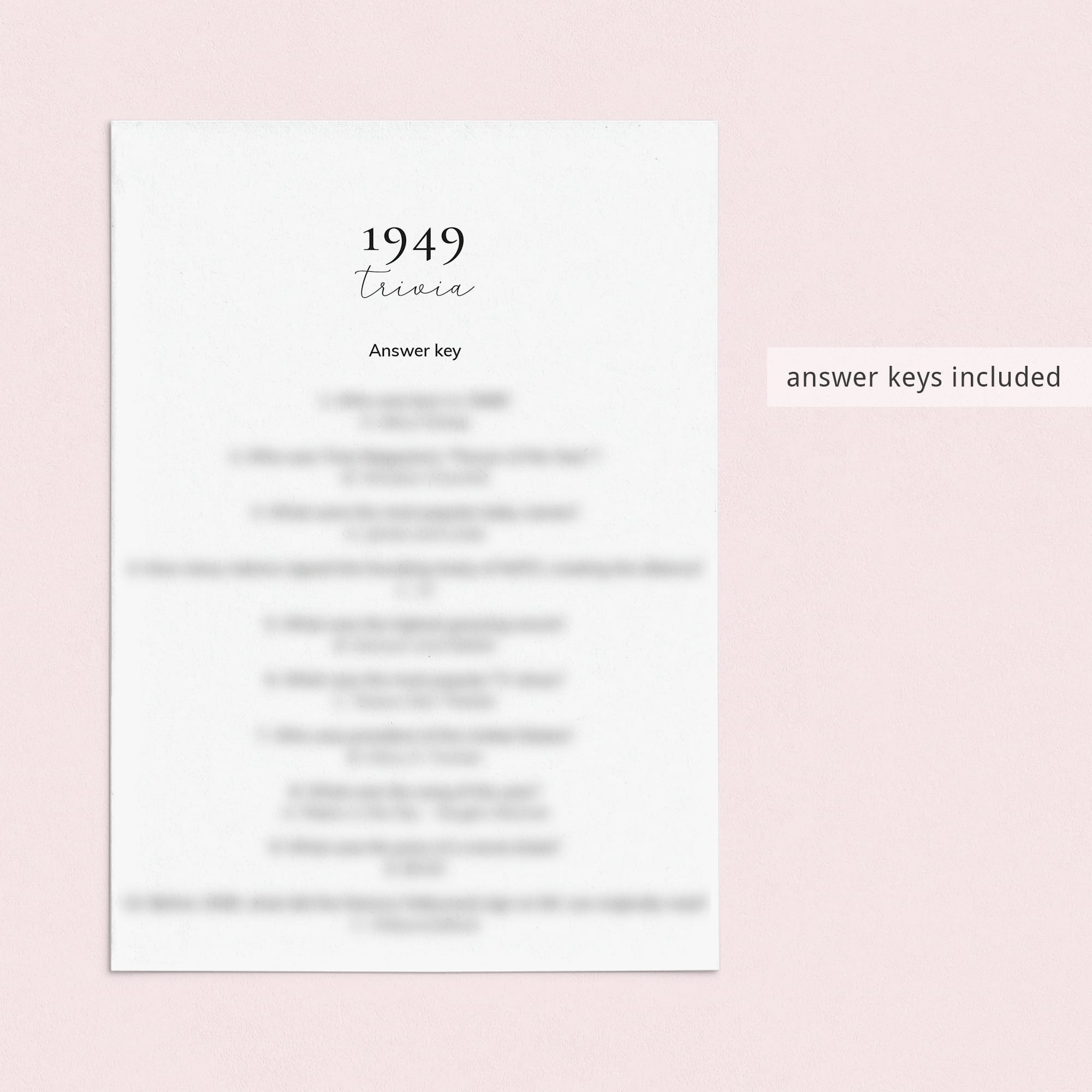 This Born in 1949 Birthday Games Bundle for Her includes the following 8 games and activities: